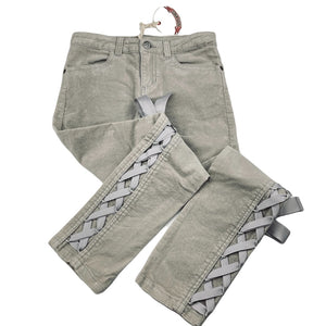 PAPER WINGS grey velvet stretch cotton pants, adjustable, Inside leg: 59cm, size 8, BNWT