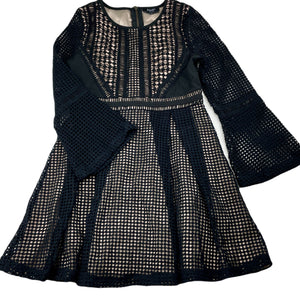 Bardot Junior lined black lace long sleeve dress, size 8, Pre-loved