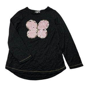 Milkshake lightweight long sleeve top, sequin butterfly, size 8, Pre-loved