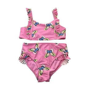 Target pink swim top & bottoms, butterflies, size 8, Pre-loved