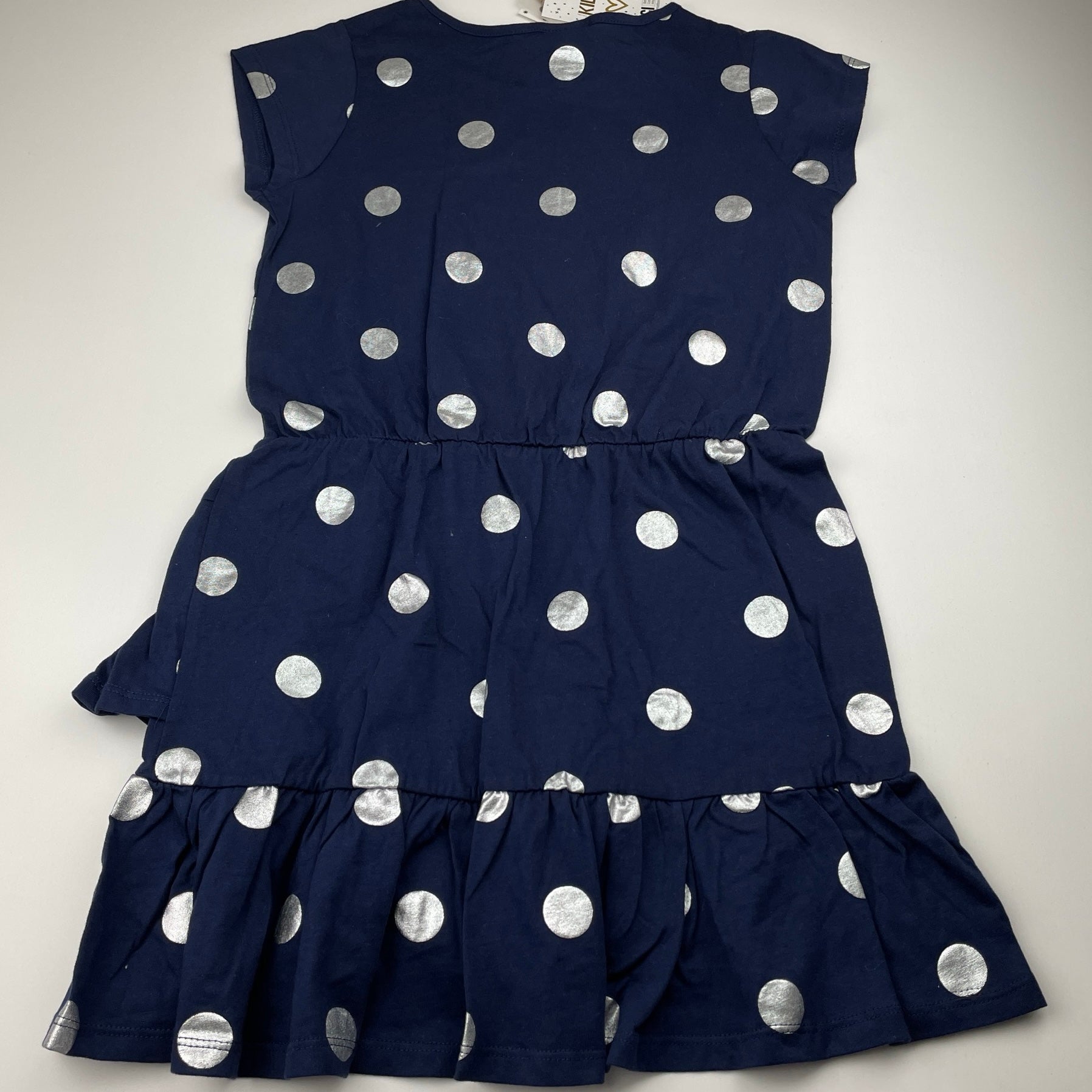 Cotton On, navy cotton & silver spot dress, NEW, size 9, L: 67cm