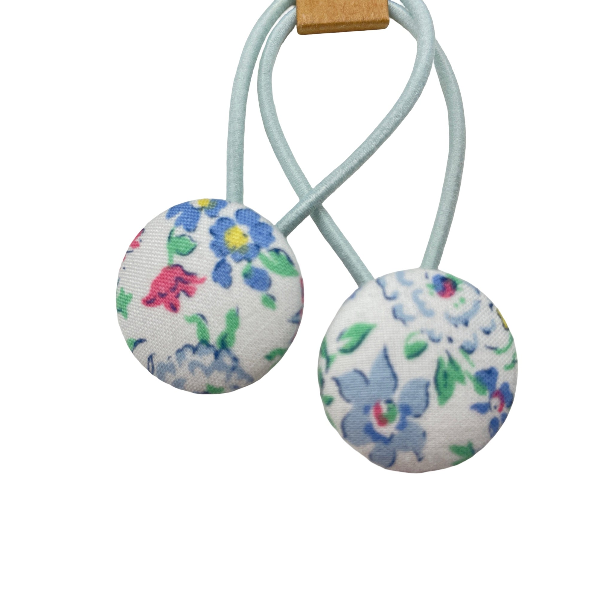 Set of 2 floral fabric covered button hair ties. Button size: 23mm.