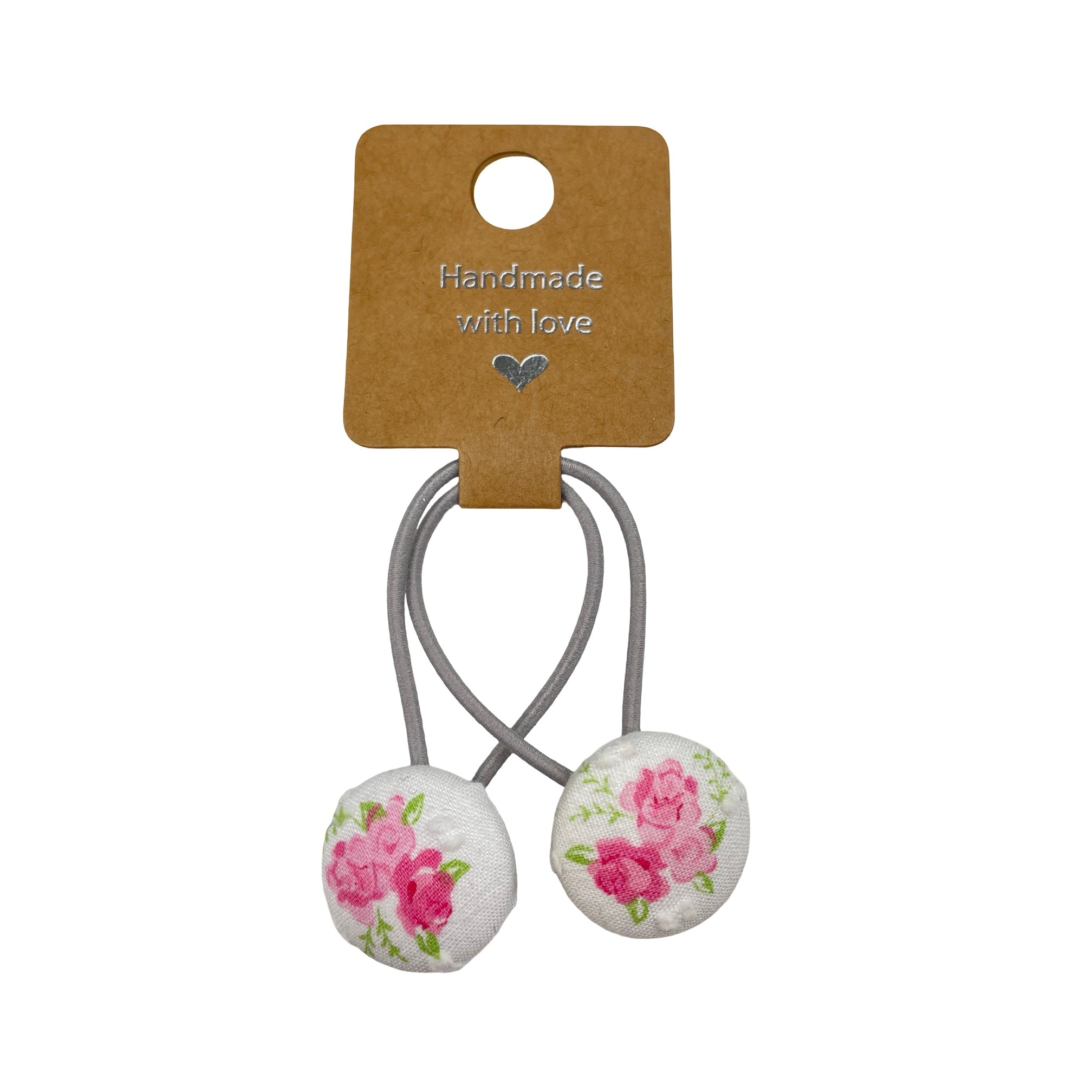 Set of 2 floral fabric covered button hair ties. Button size: 23mm.