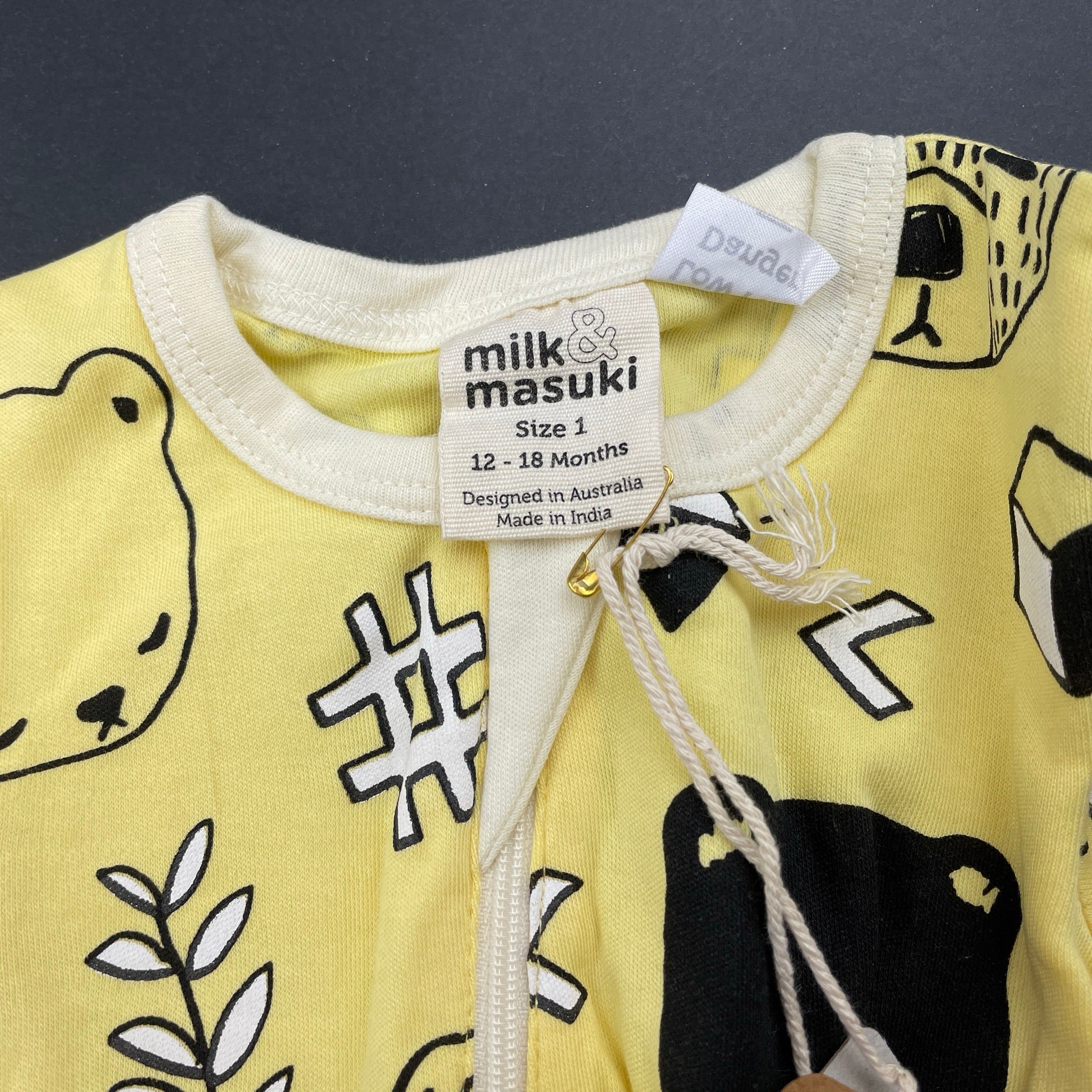 Milk & Masuki, organic cotton zip coverall / romper, bears picnic, NEW, size 1,