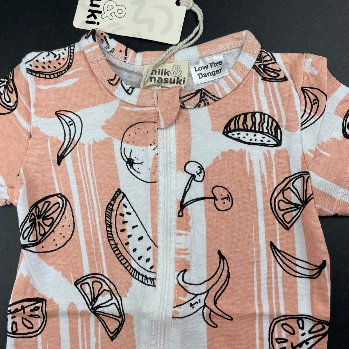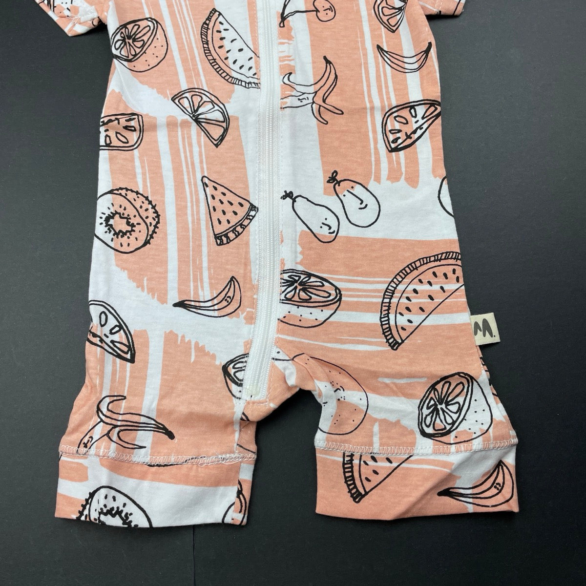 Milk & Masuki, organic cotton zip romper, fruit, NEW, size 000,