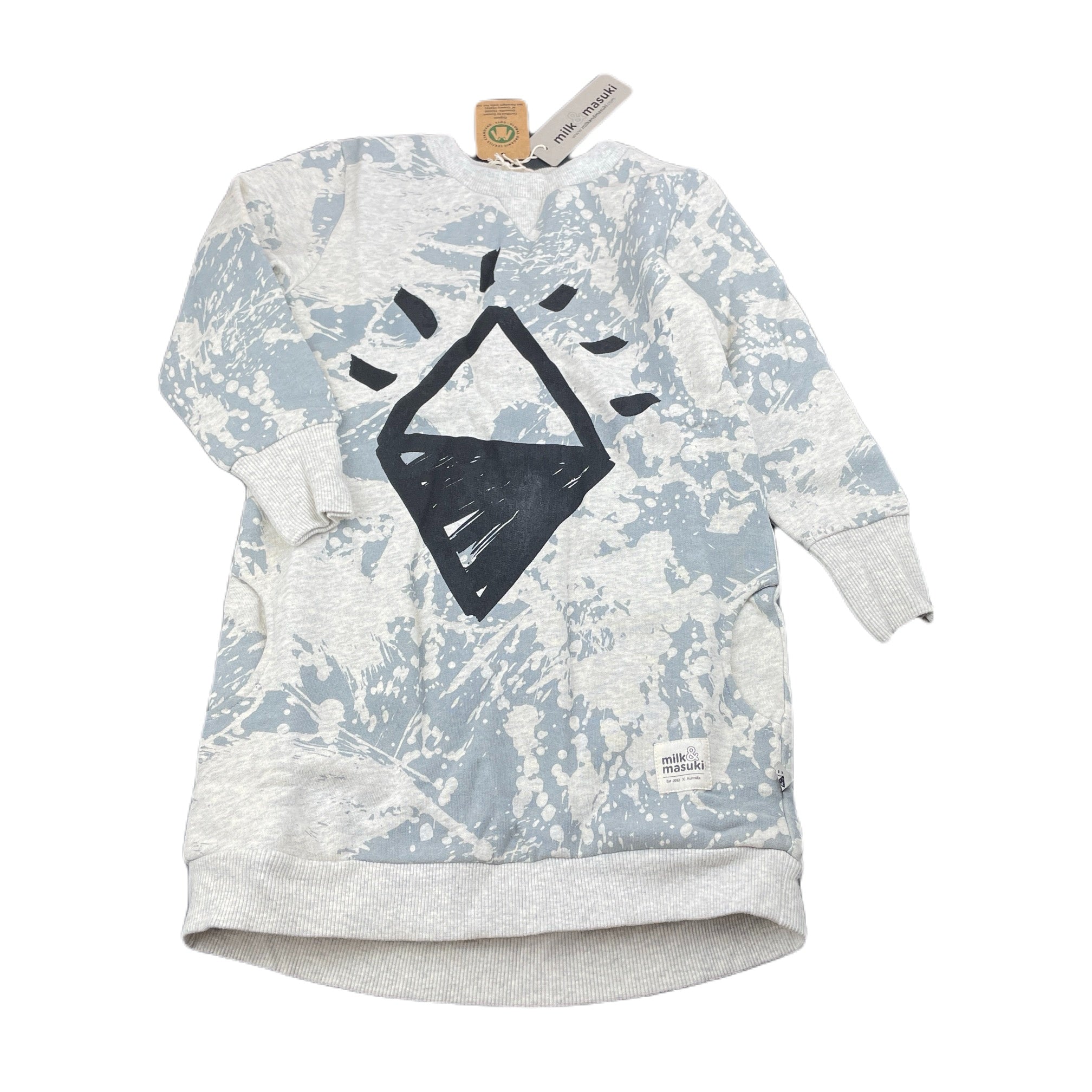 Milk & Masuki, fleece lined organic cotton sweater dress, NEW, size 5, L: 59cm at front