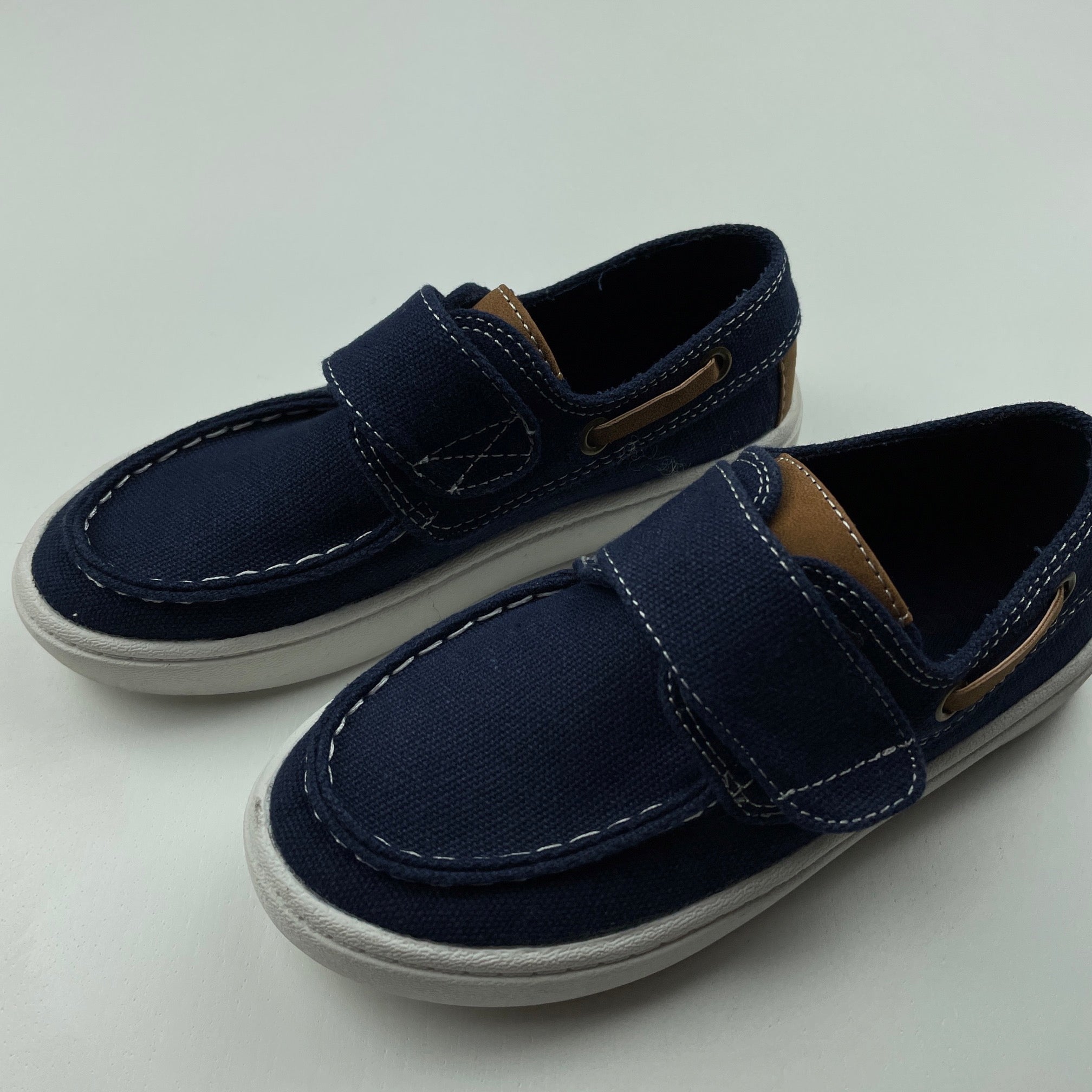 Boys Seed, navy fabric boat shoes / loafers, size 9.5, EUC, size 3-4,