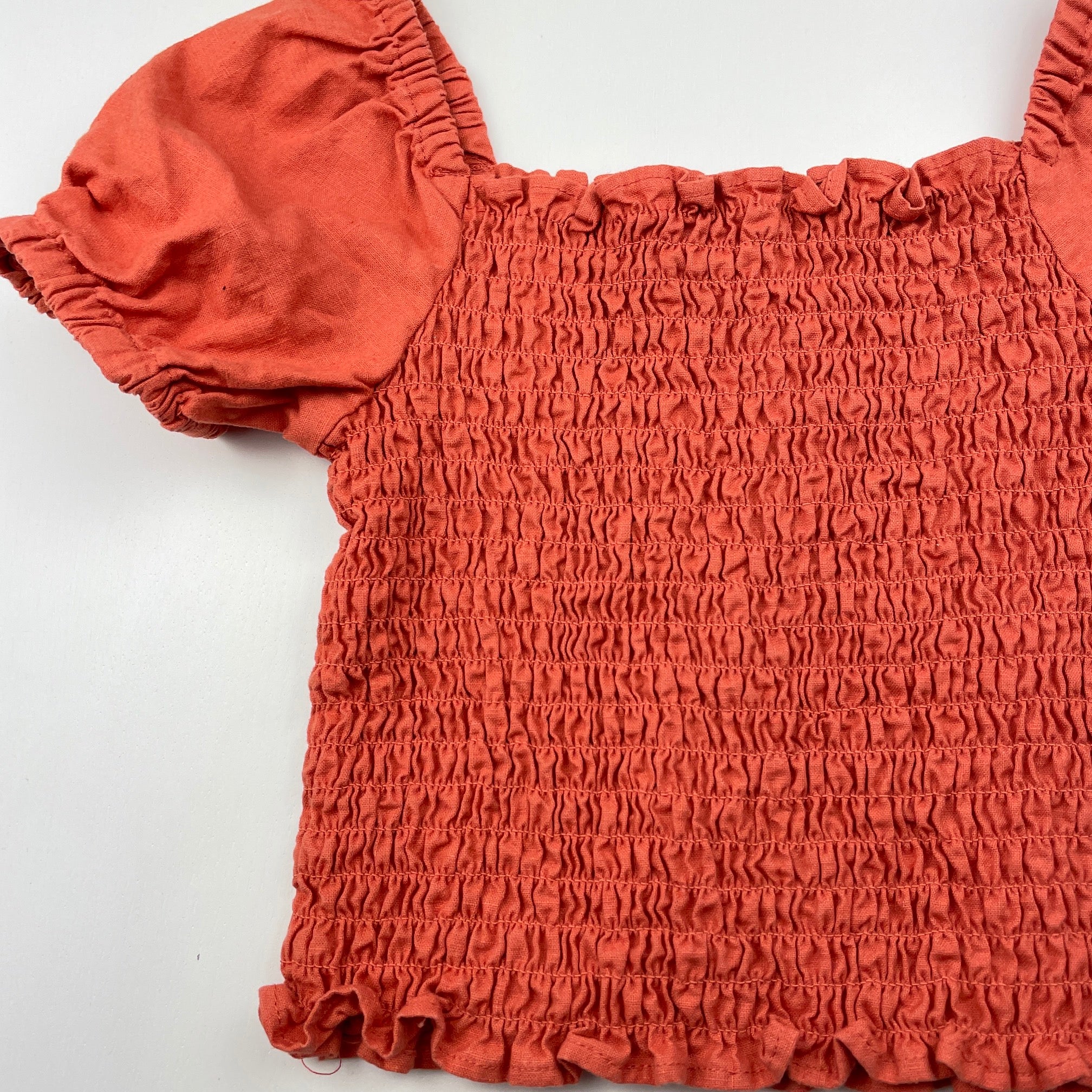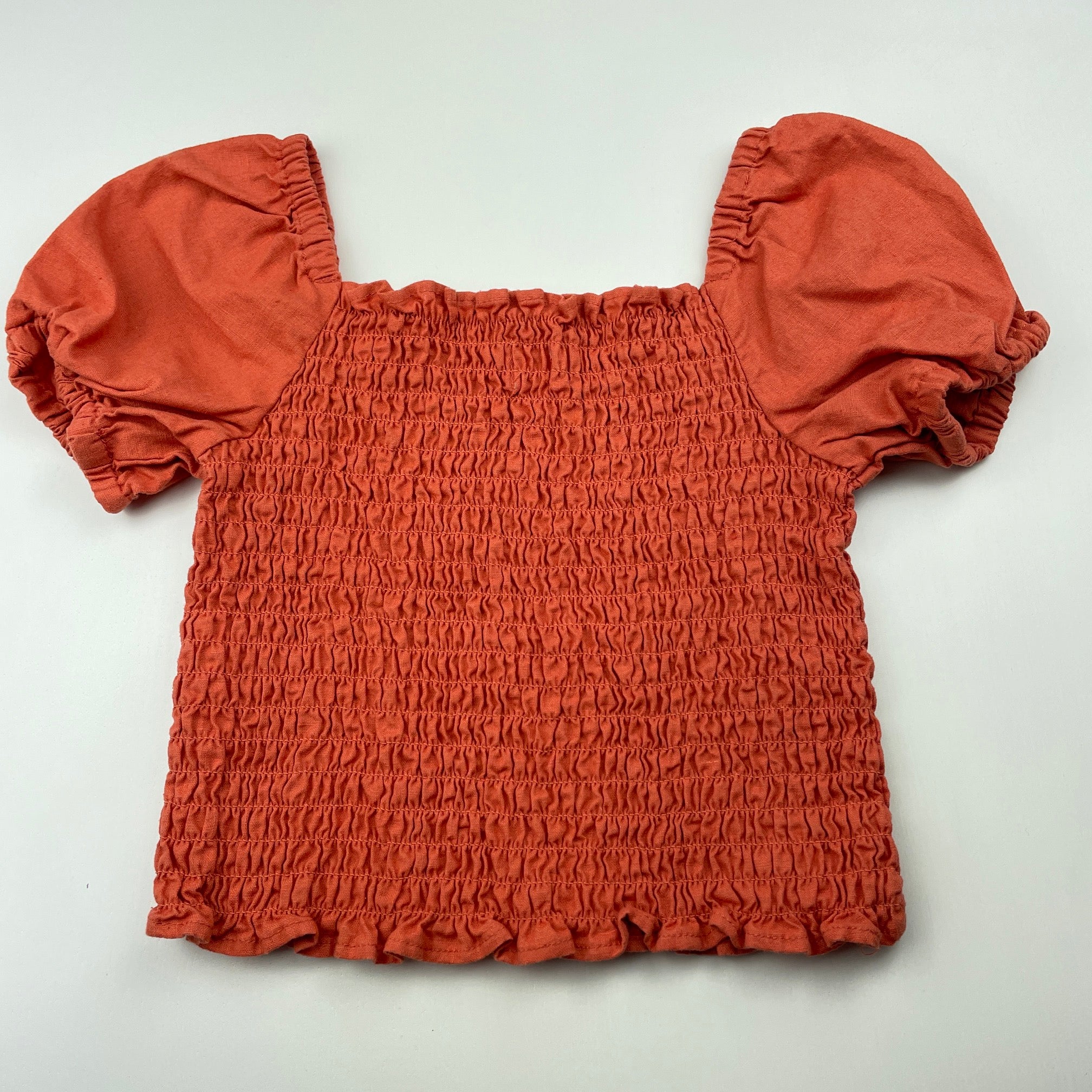 Seed, shirred puff sleeve linen blend top, EUC, size 4,