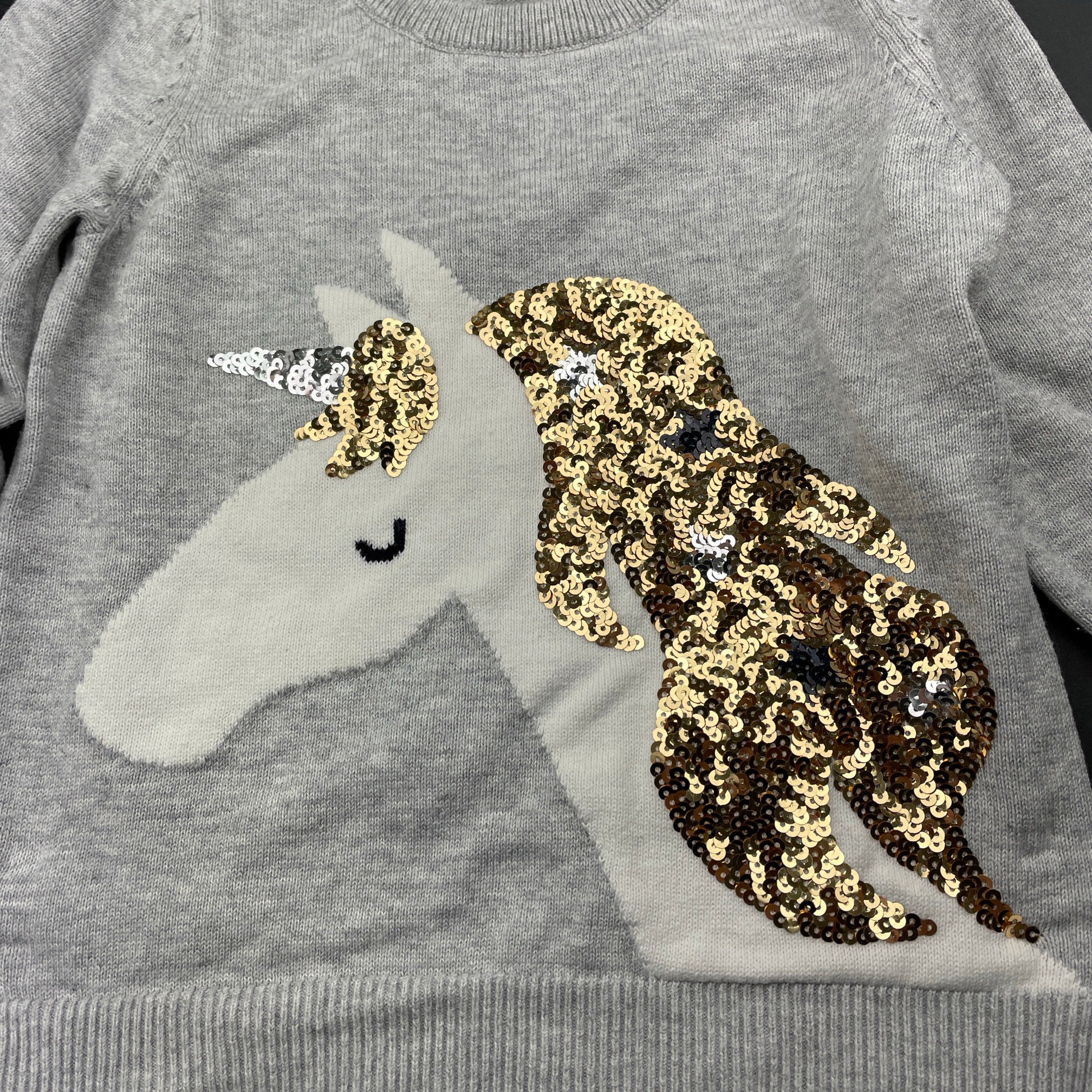 Seed, cotton sweater / jumper, sequin unicorn, EUC, size 2,