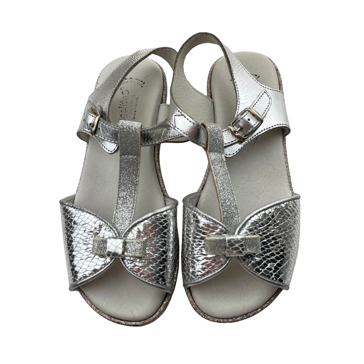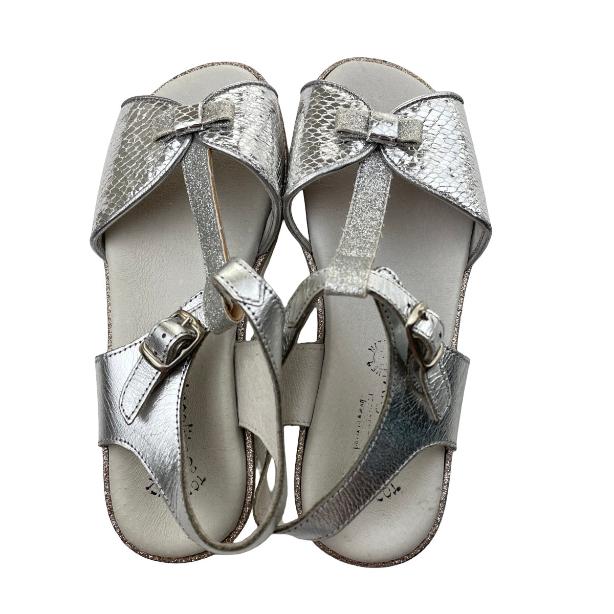 Shoes Angelitos, silver patent leather sandals, Made in Spain, EU 32, FUC, size 13.5,