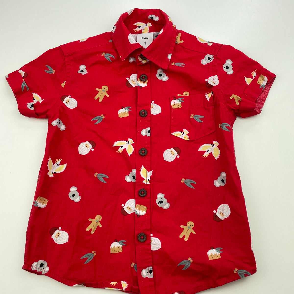 Big W, cotton Christmas short sleeve shirt, GUC, size 1,