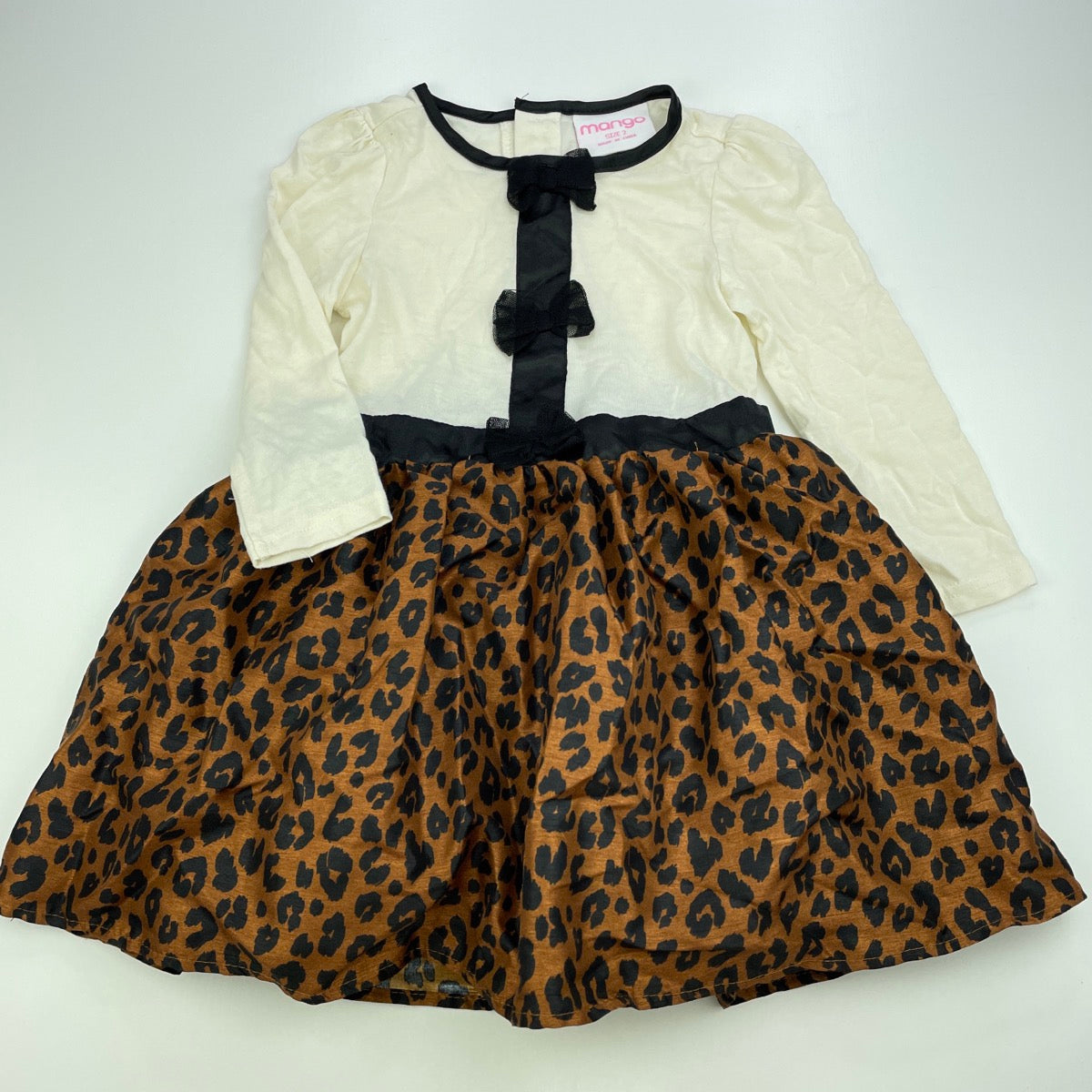 Mango, long sleeve leopard print party dress, EUC, size 2, L: 47cm