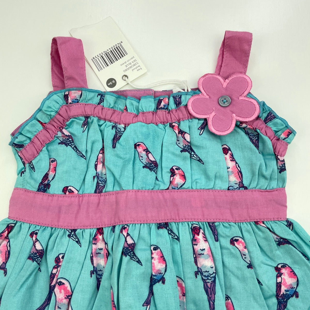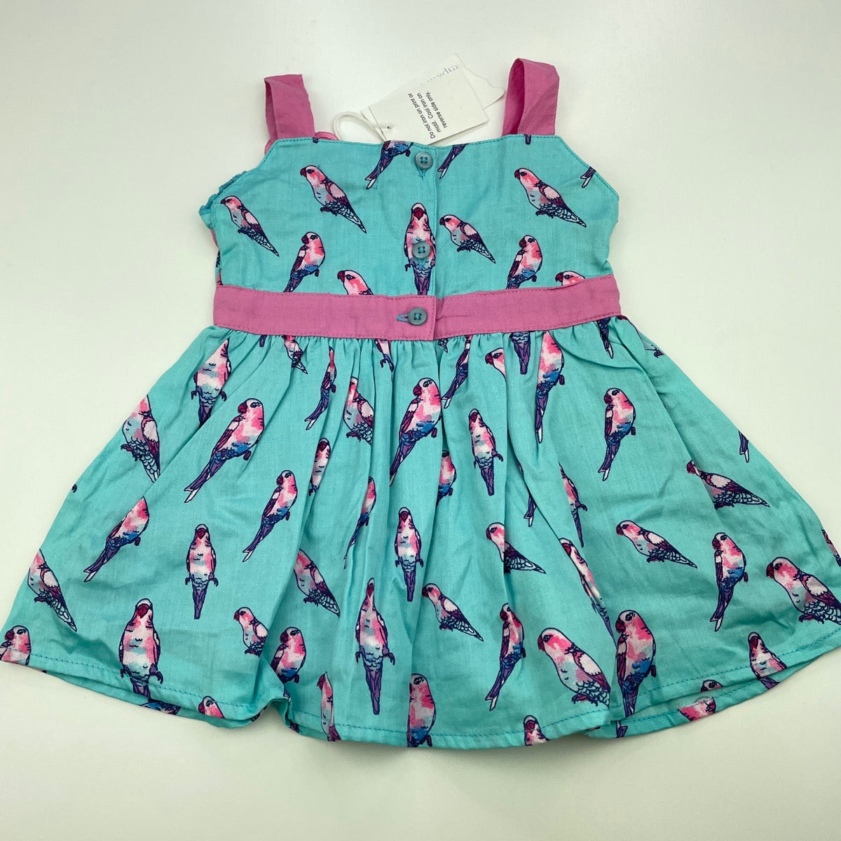 Pumpkin Patch, lined lightweight cotton summer dress, birds, NEW, size 000, L: 36cm