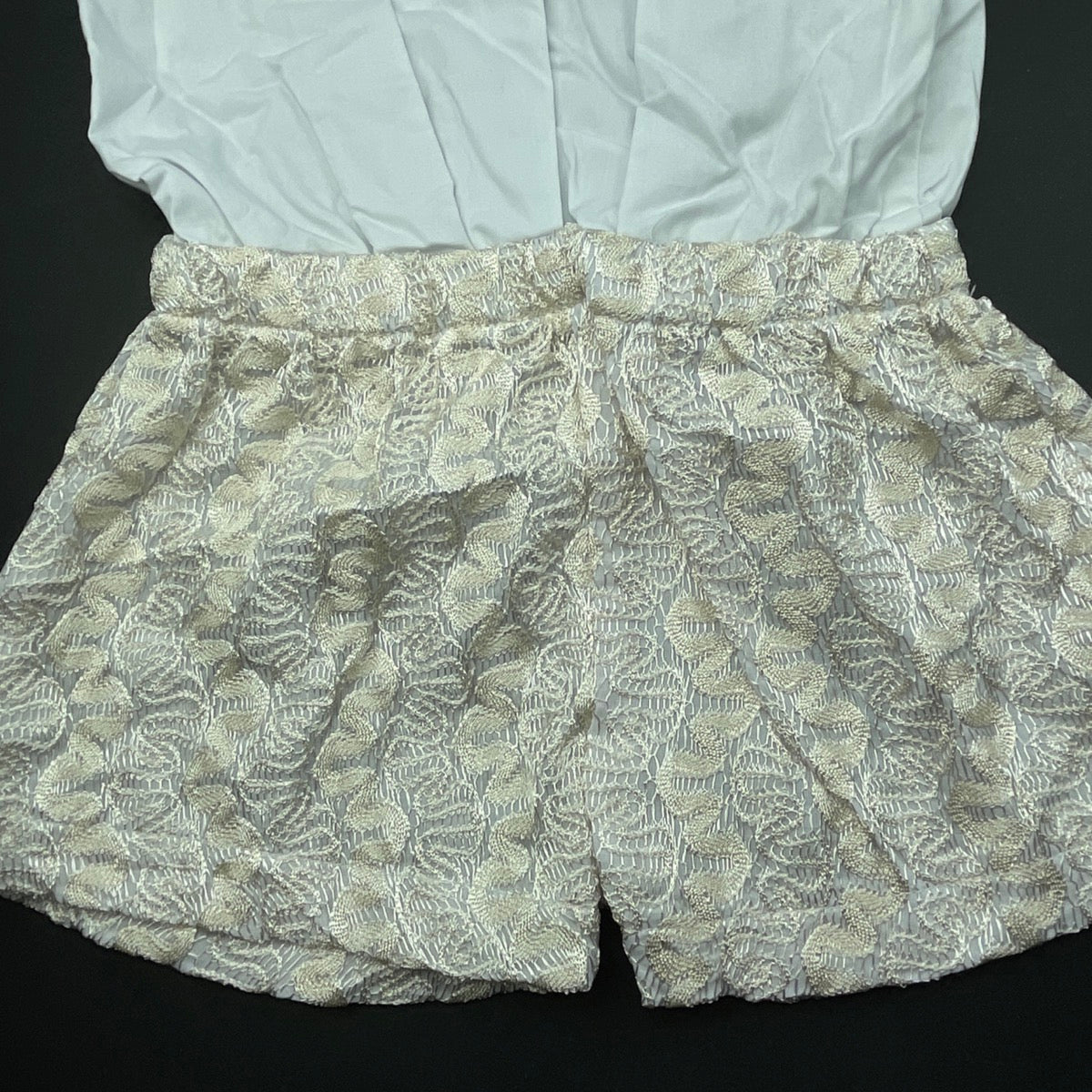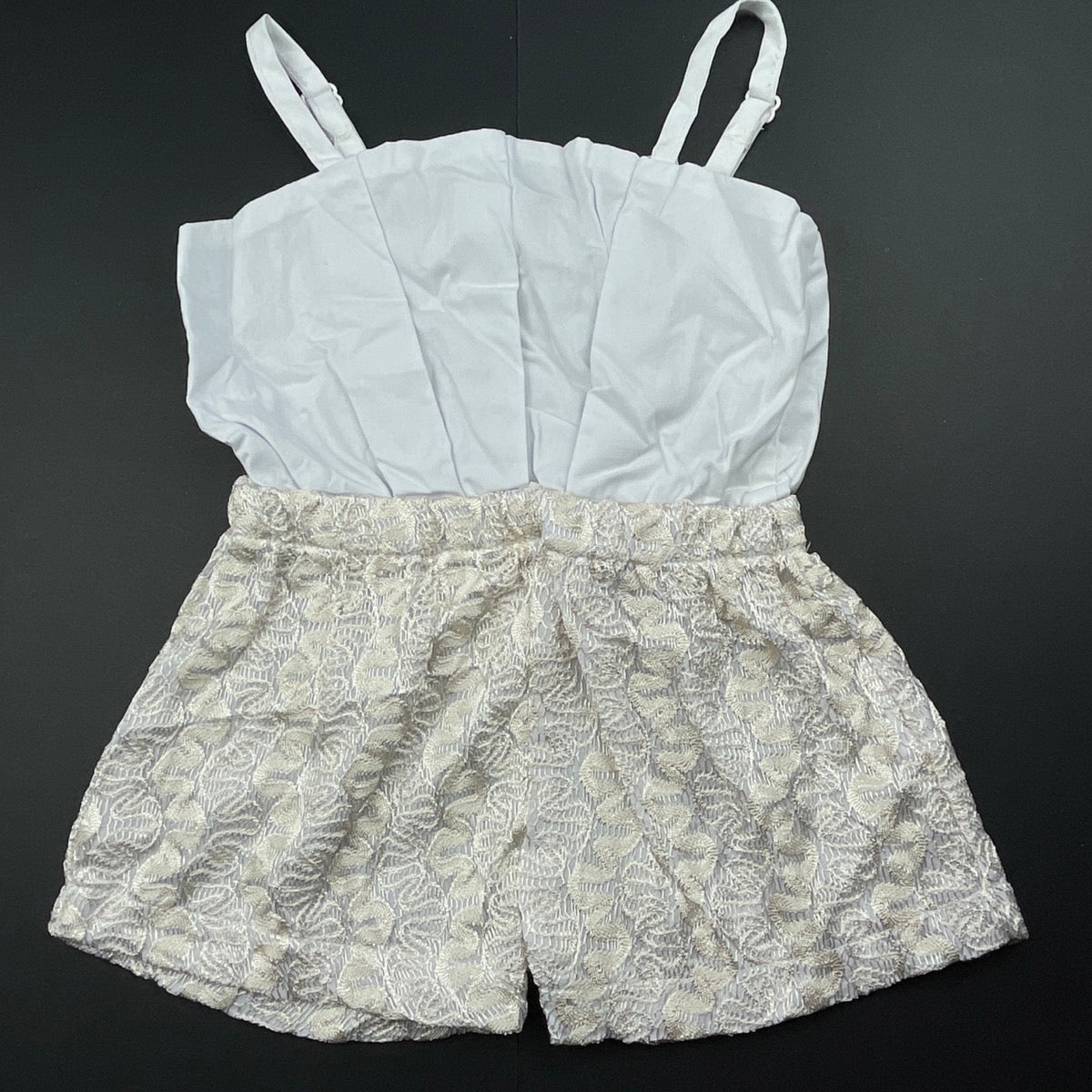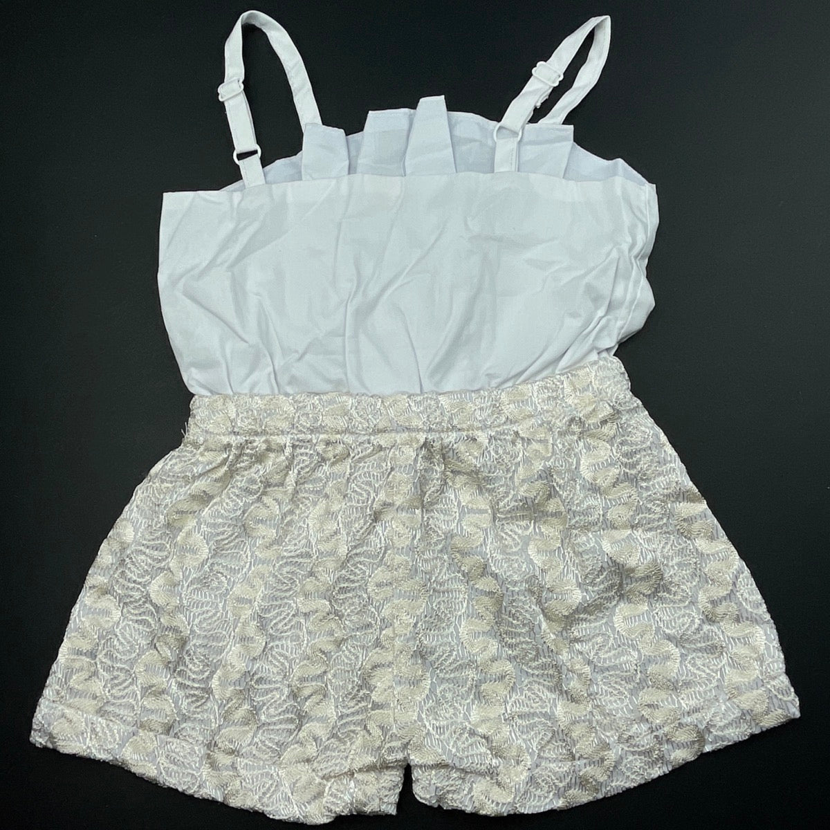 spliced, white & gold summer romper, EUC, size 1-2,