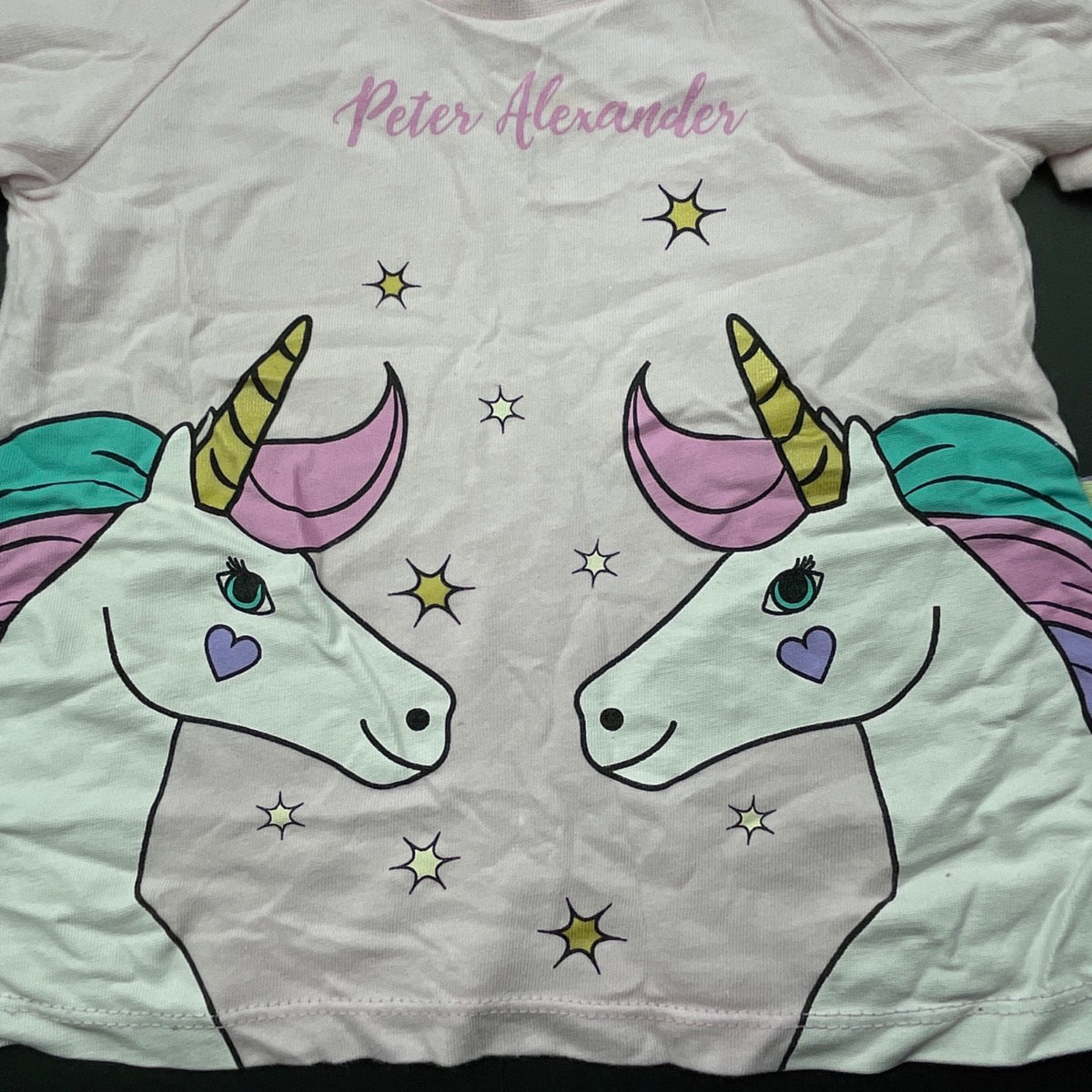 Peter Alexander, cotton pyjama t-shirt / top, unicorns, FUC, size 1,