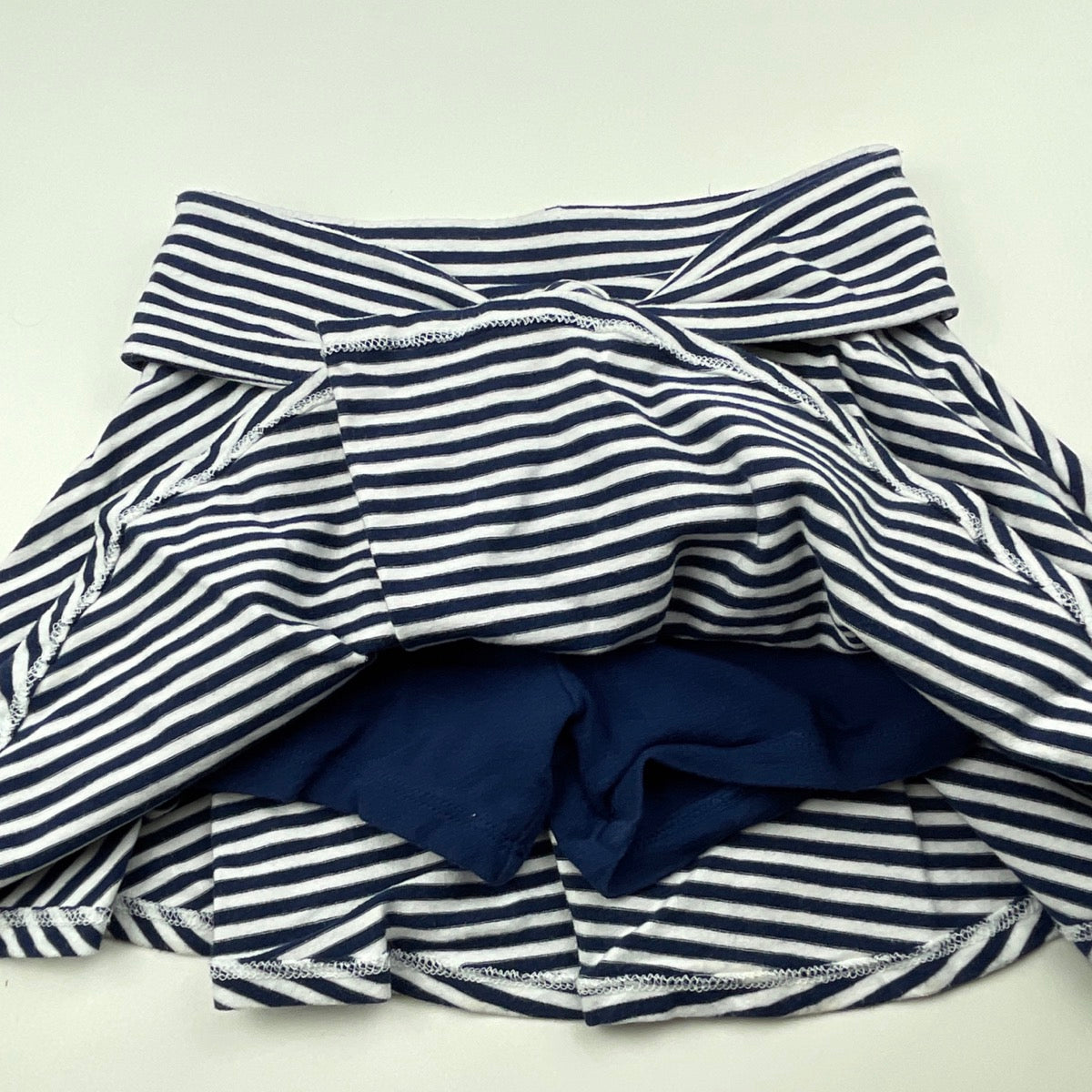 Target, navy stripe skirt, elasticated, built-in shorts, GUC, size 5,