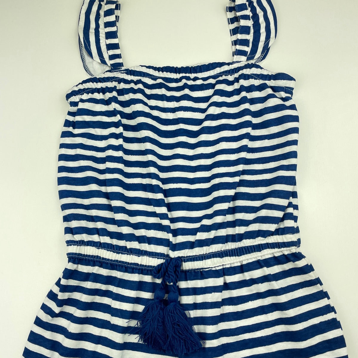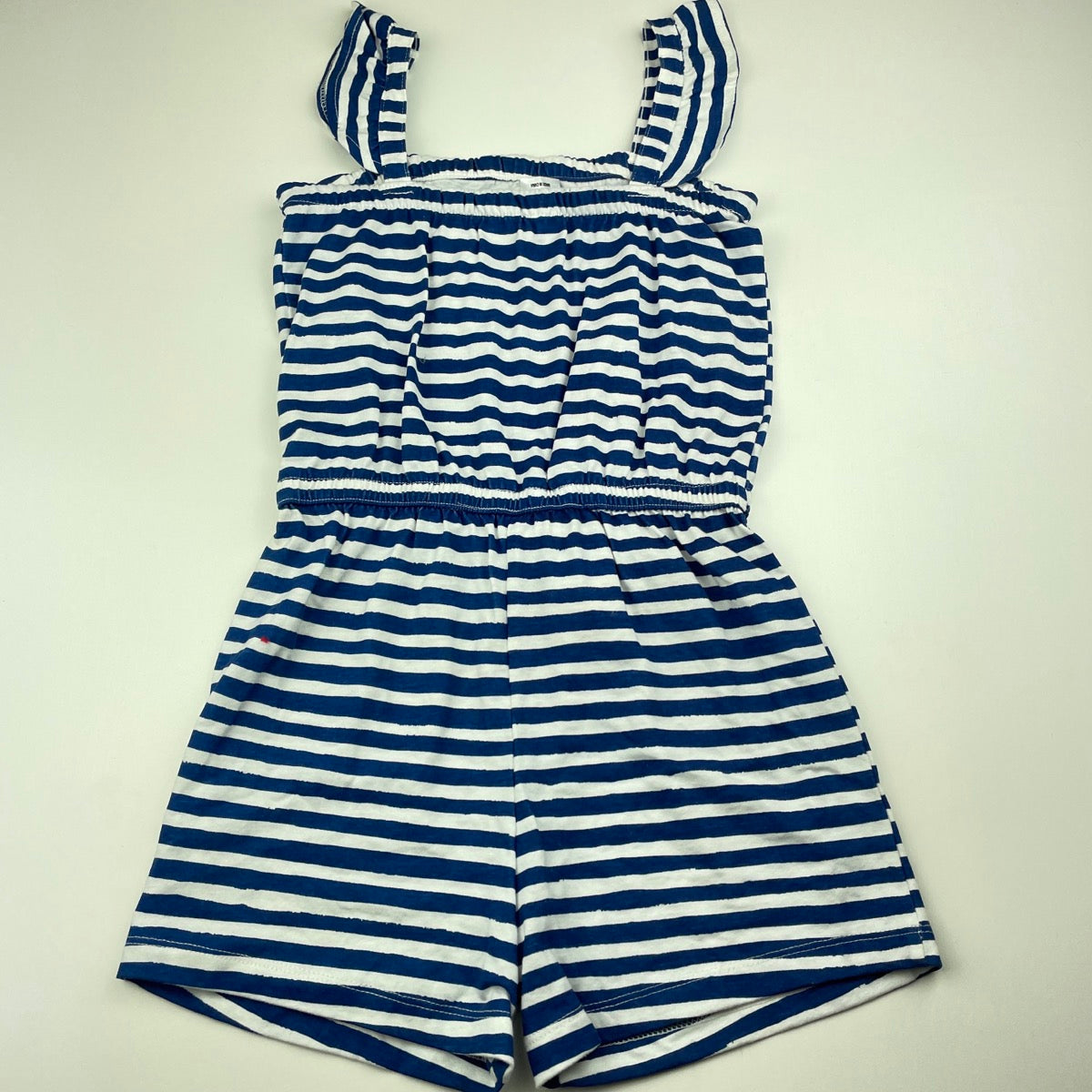 H&T, blue stripe cotton summer playsuit, EUC, size 7,