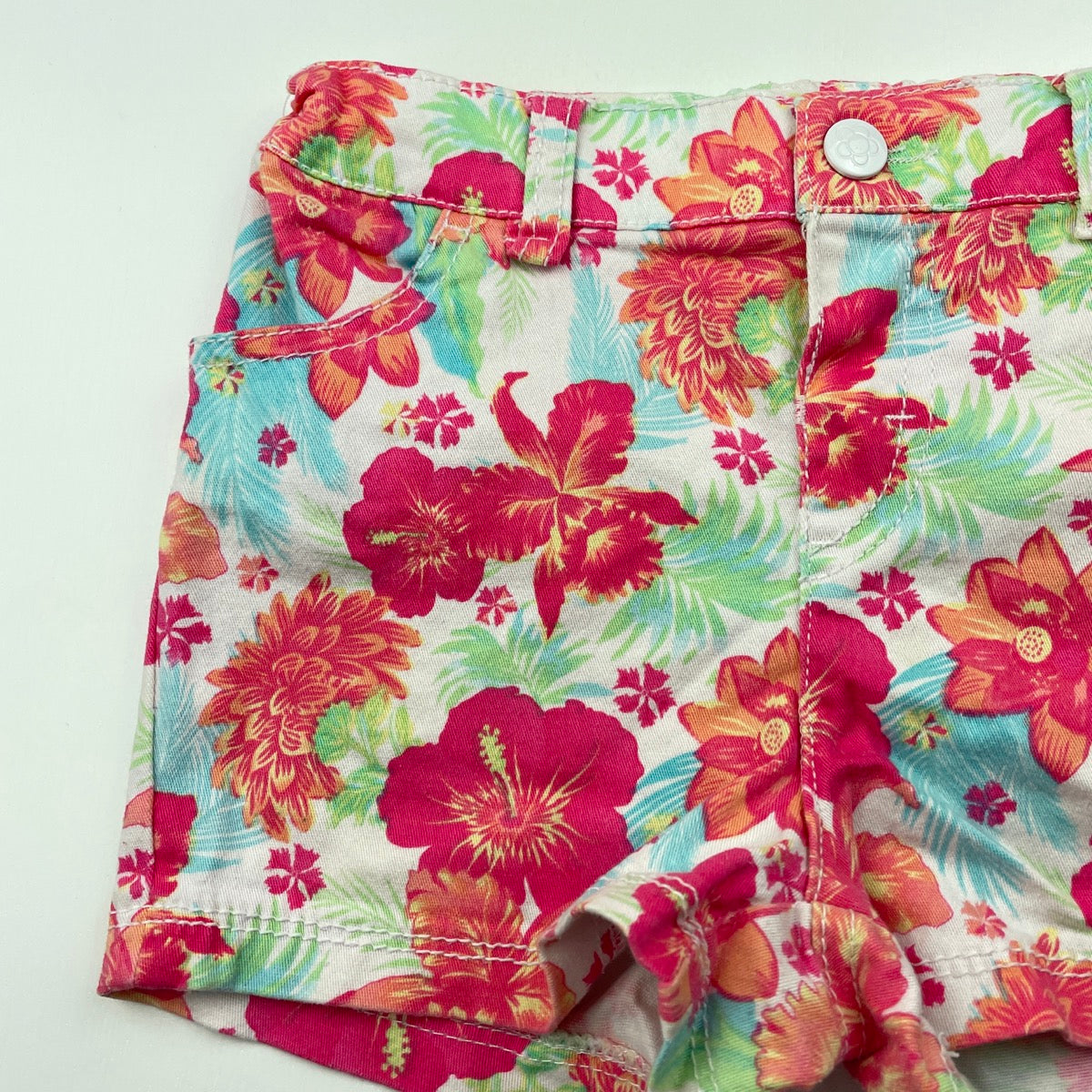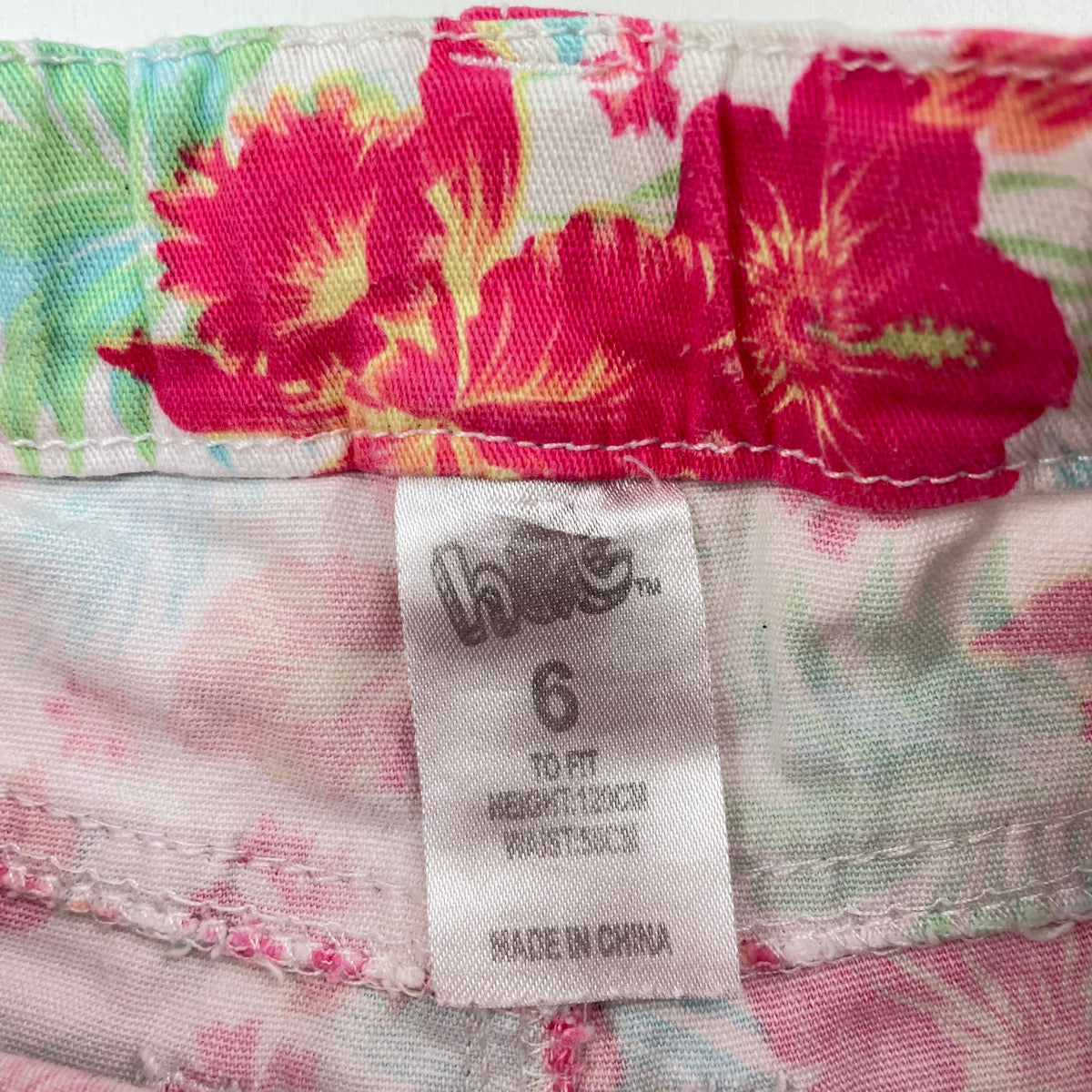 H&T, floral stretch cotton shorts, adjustable, FUC, size 6,