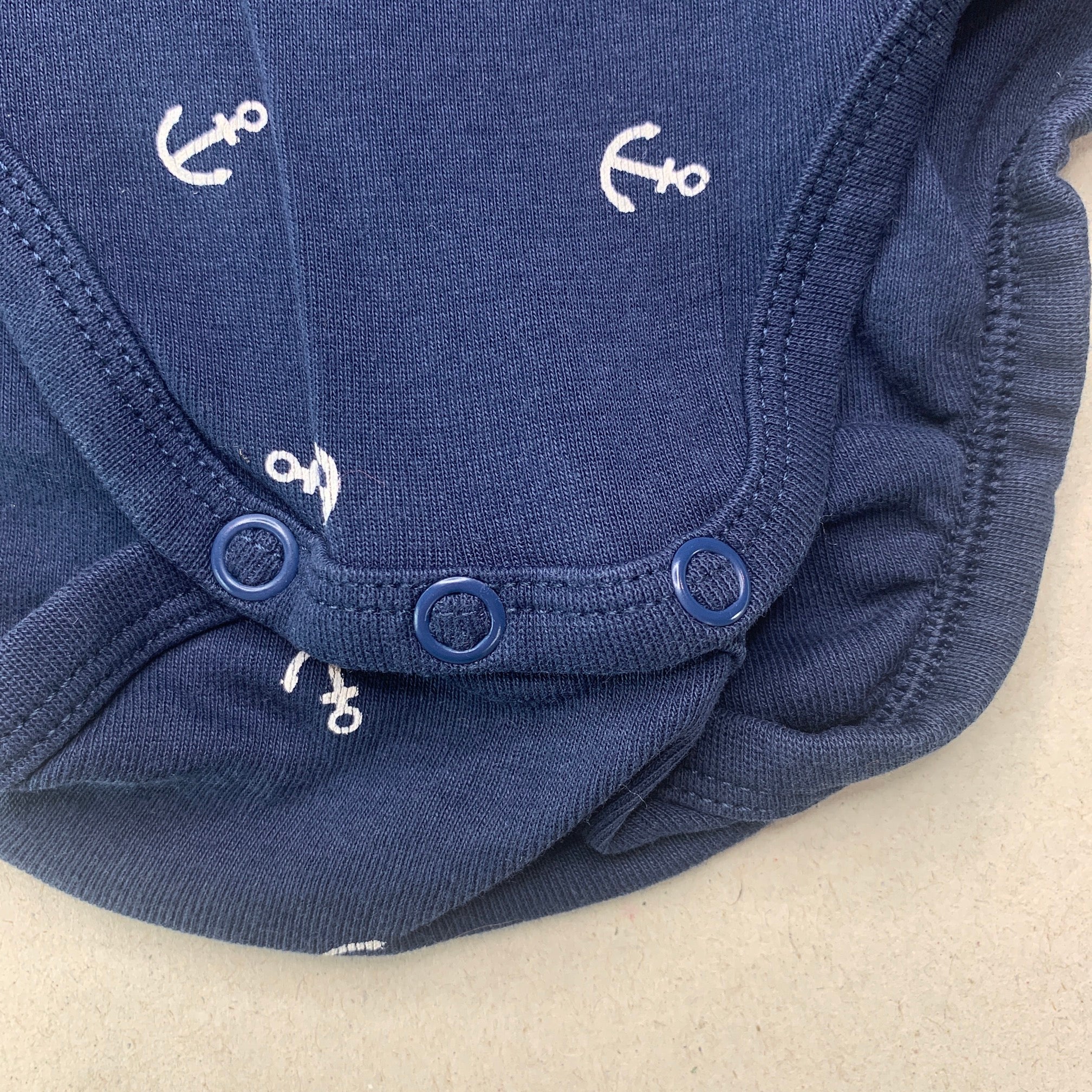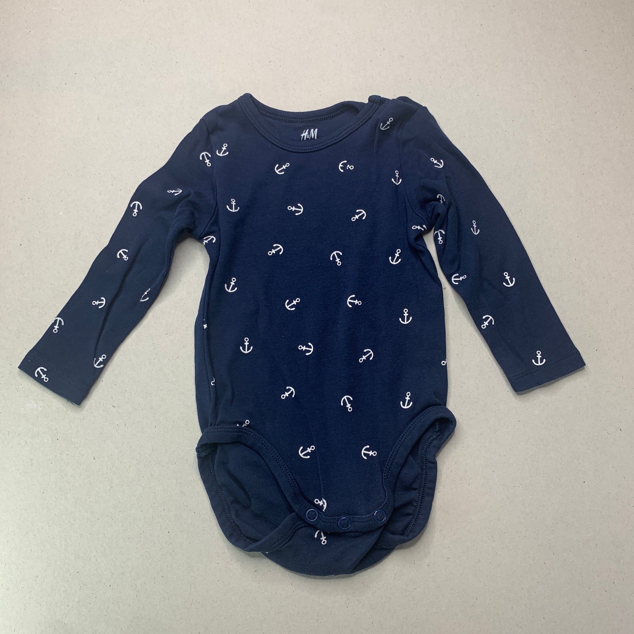 H&M, navy organic cotton bodysuit / romper, GUC, size 0,