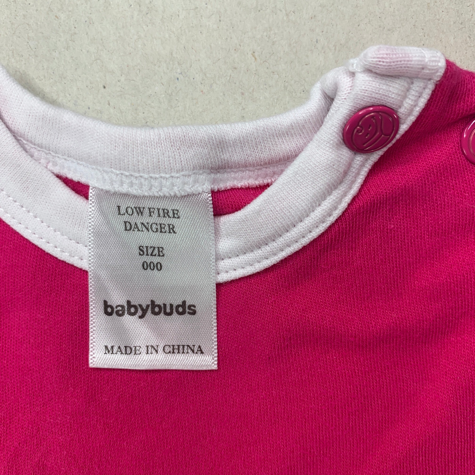 Babybuds, pink cotton bodysuit / romper + bib, GUC, size 000,