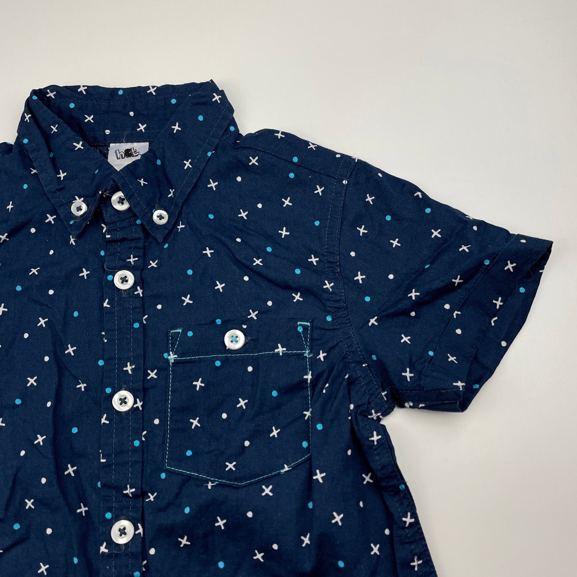 H&T, navy lightweight cotton short sleeve shirt, GUC, size 4,