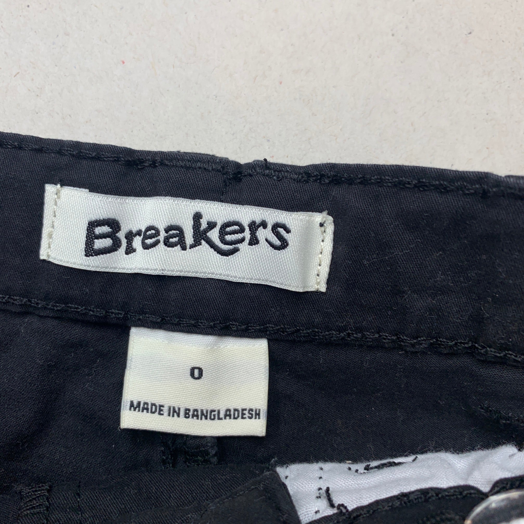 Breakers, black stretch cotton pants, adjustable, FUC, size 0,