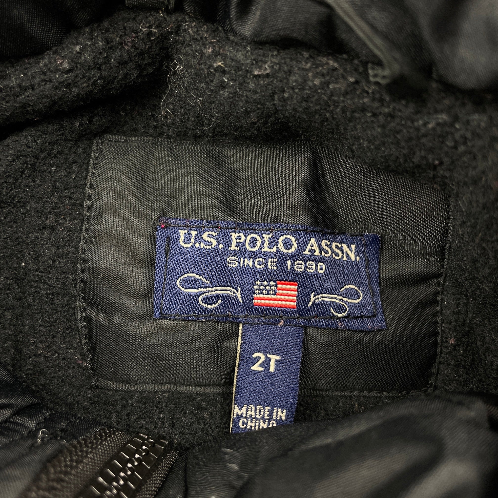 US Polo Assn, fleece lined hooded jacket / coat, L: 42cm, EUC, size 2,