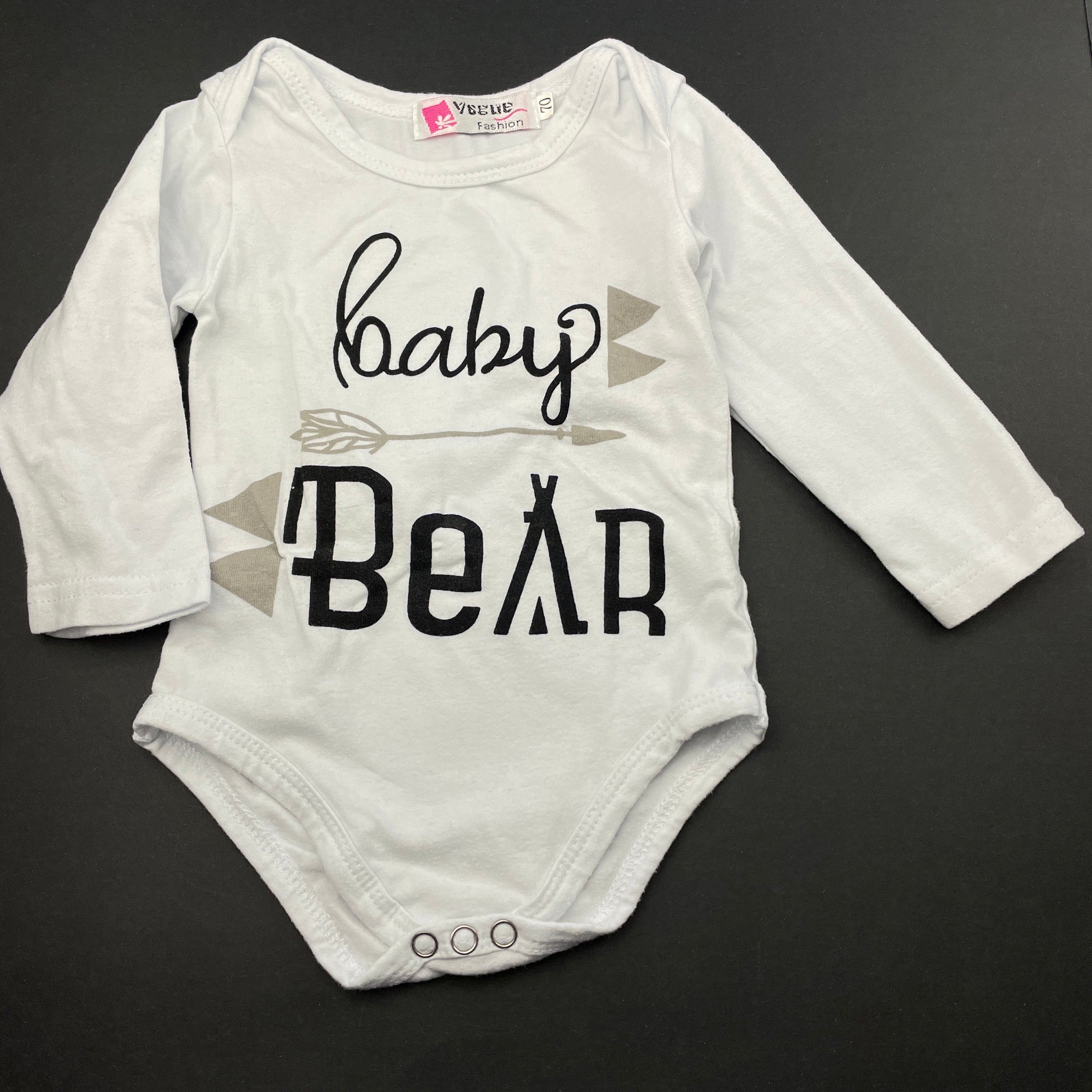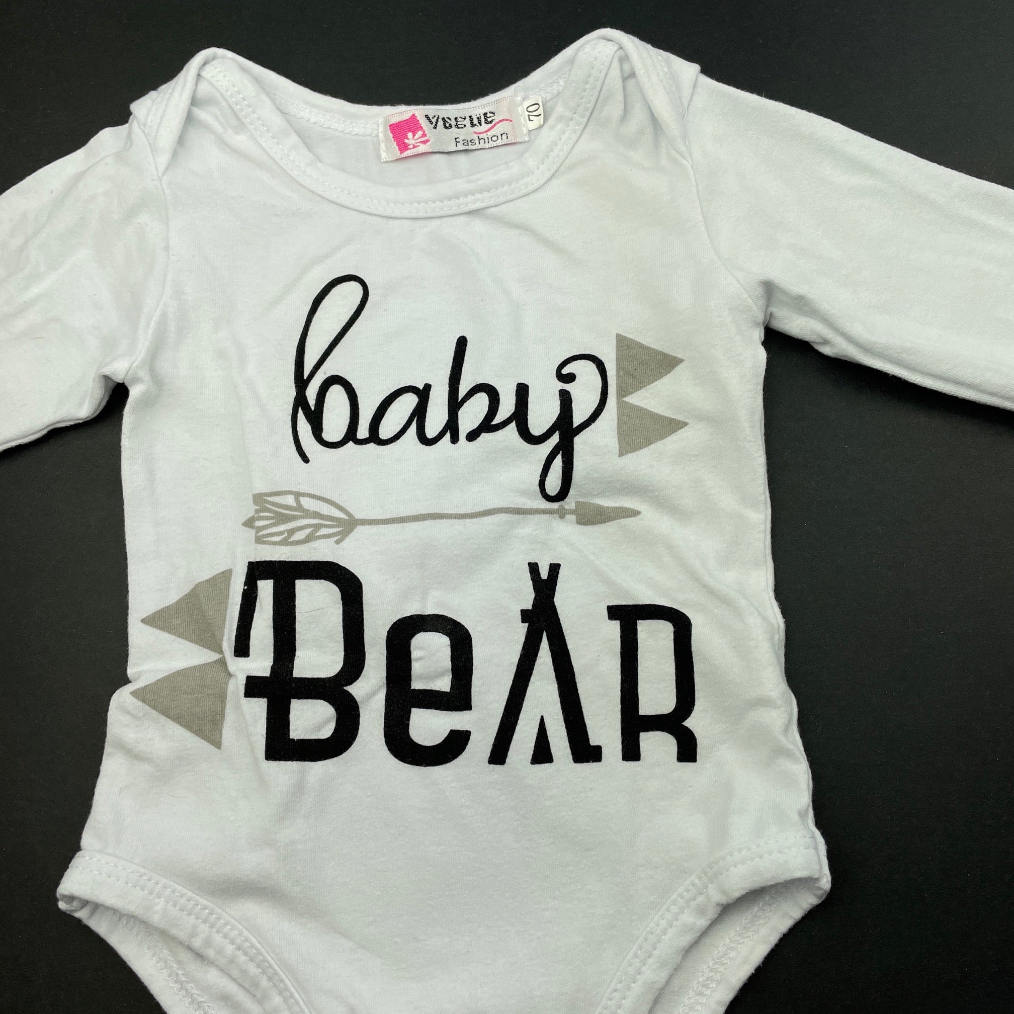Vogue Fashion, white bodysuit / romper, bear, FUC, size 00,