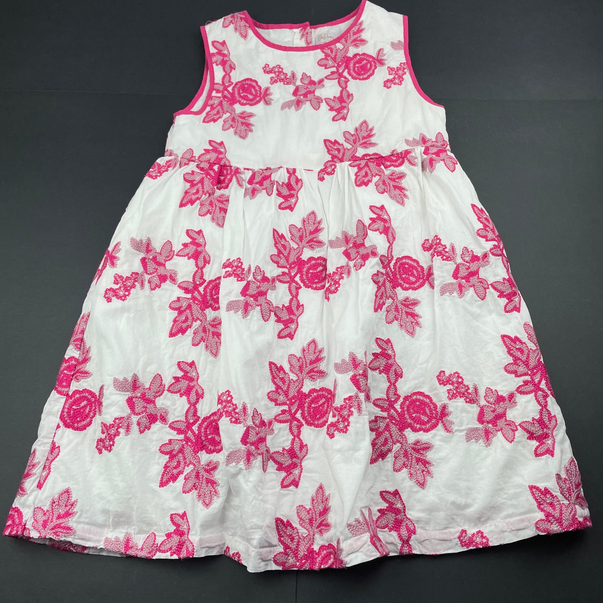 Collette Dinnigan Enfant, lined embroidered floral cotton dress, GUC, size 8, L: 63cm