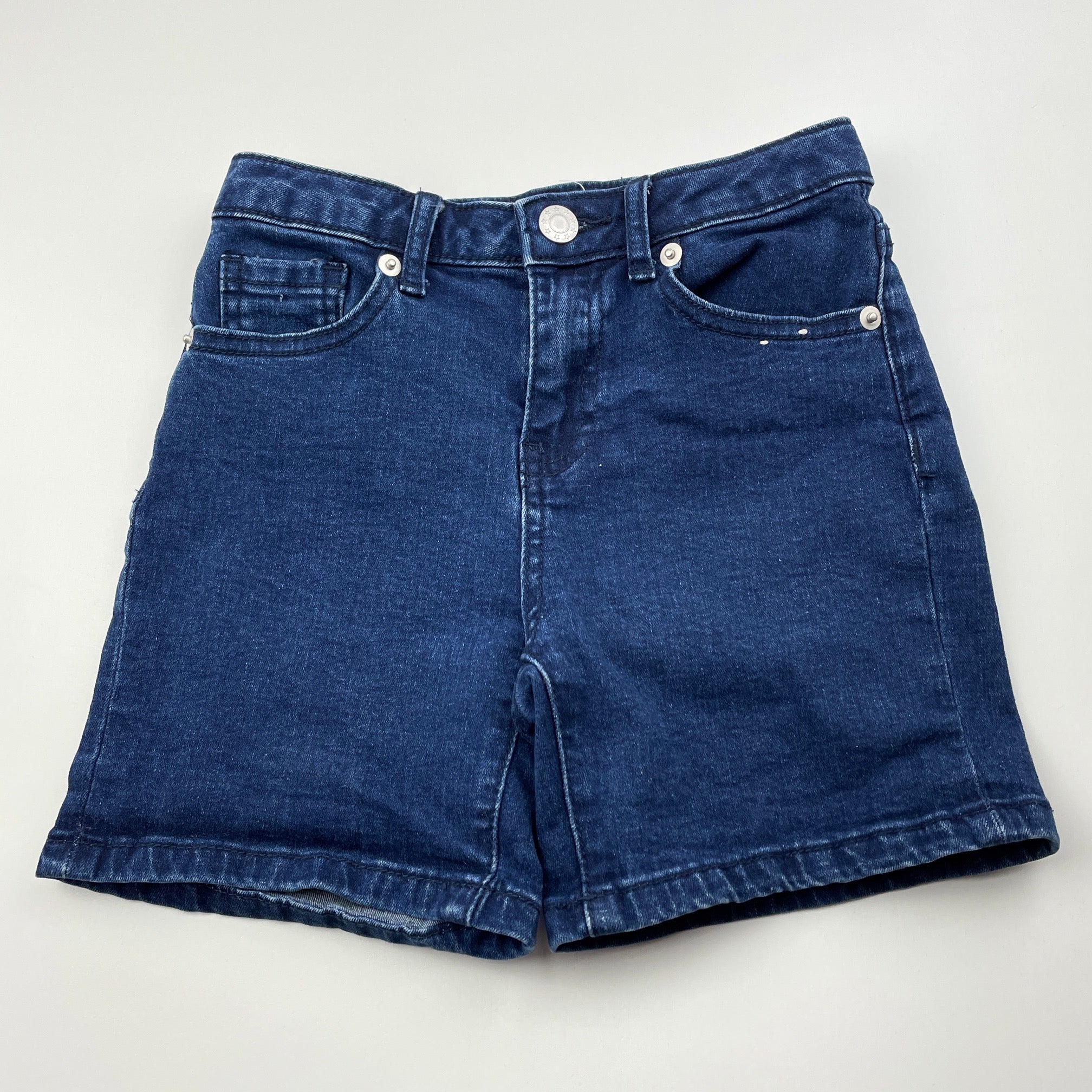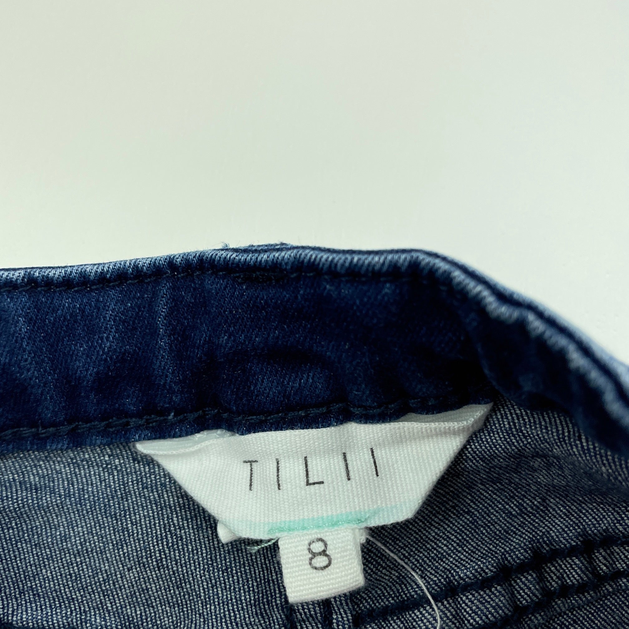 Tilii, dark stretch denim jean shorts, adjustable, GUC, size 8,