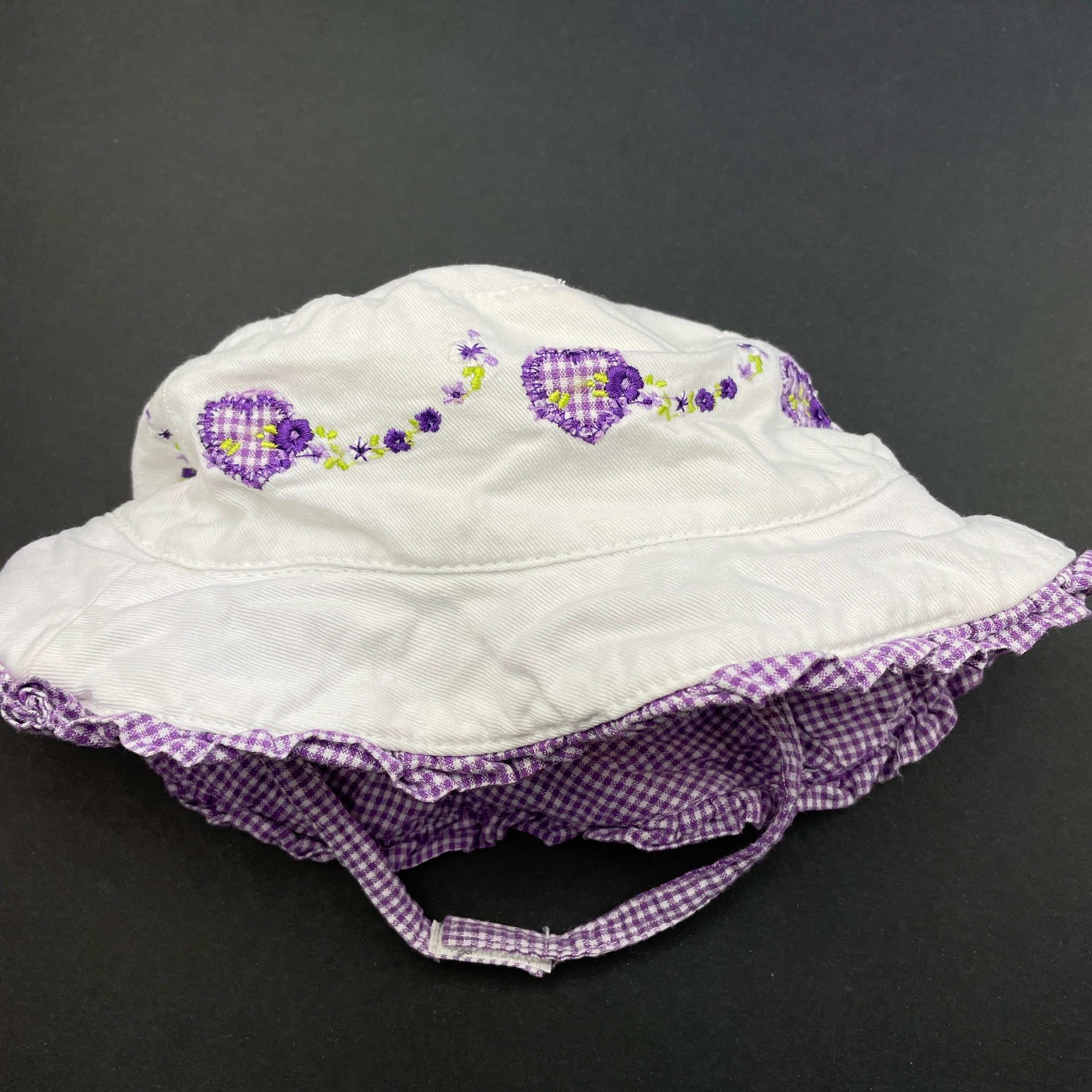 Cancer Council, embroidered cotton hat, FUC, size 1-2,
