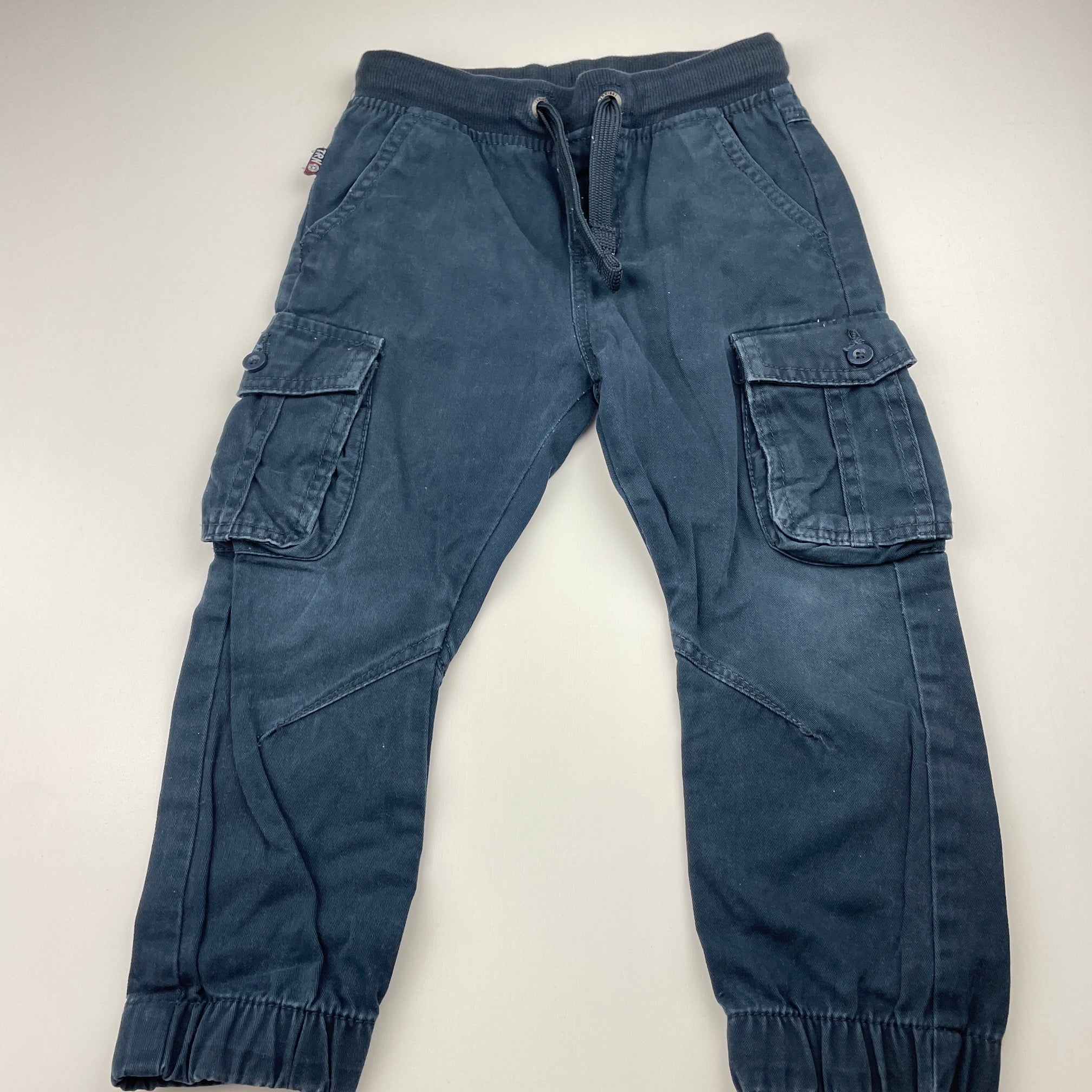 Terranova, navy cotton cargo pants, elasticated, Inside leg: 34cm, GUC, size 2-3,