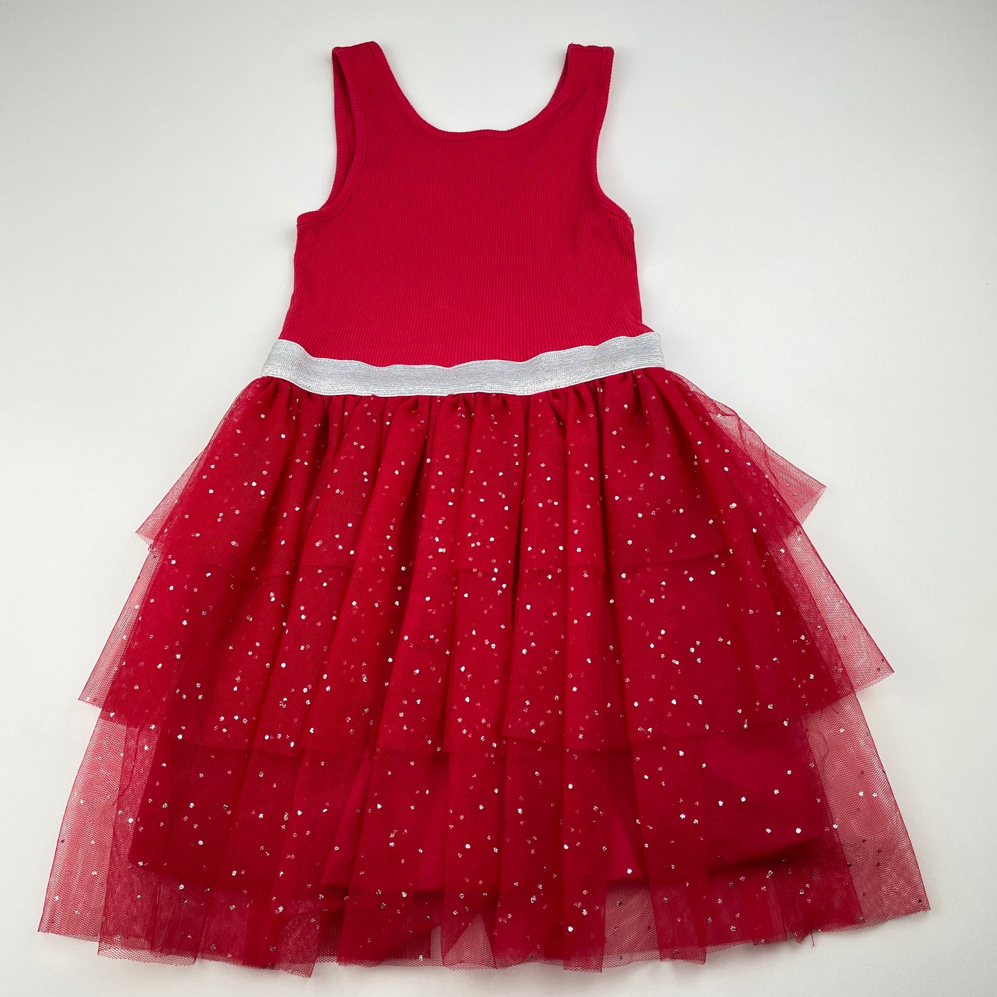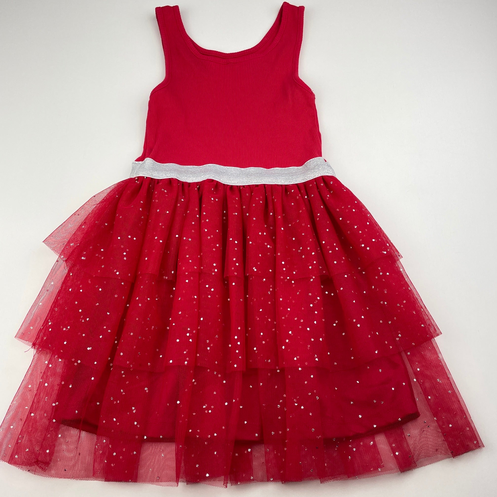 Mango, red & silver tulle party dress, EUC, size 4, L: 57cm