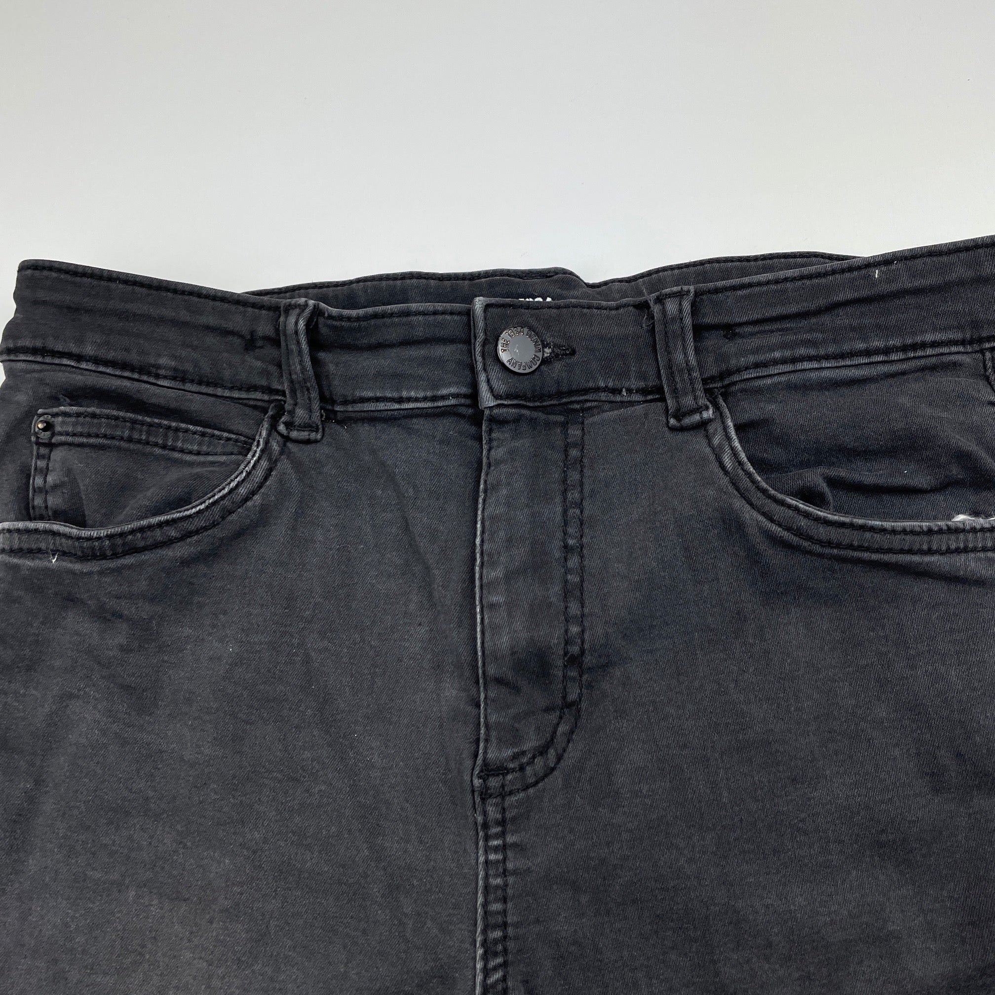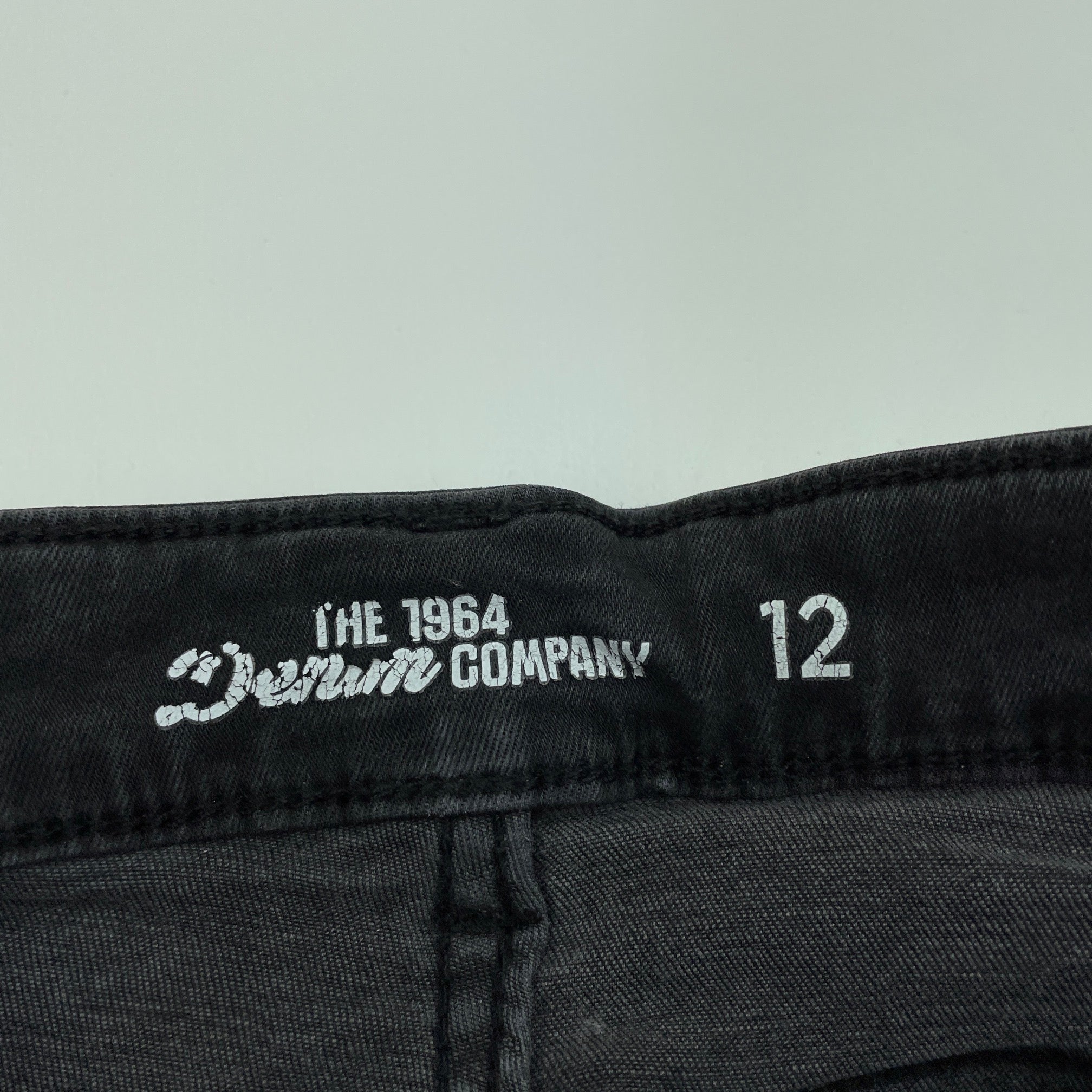 1964 Denim Co, stretch denim jean shorts, adjustable, FUC, size 12,