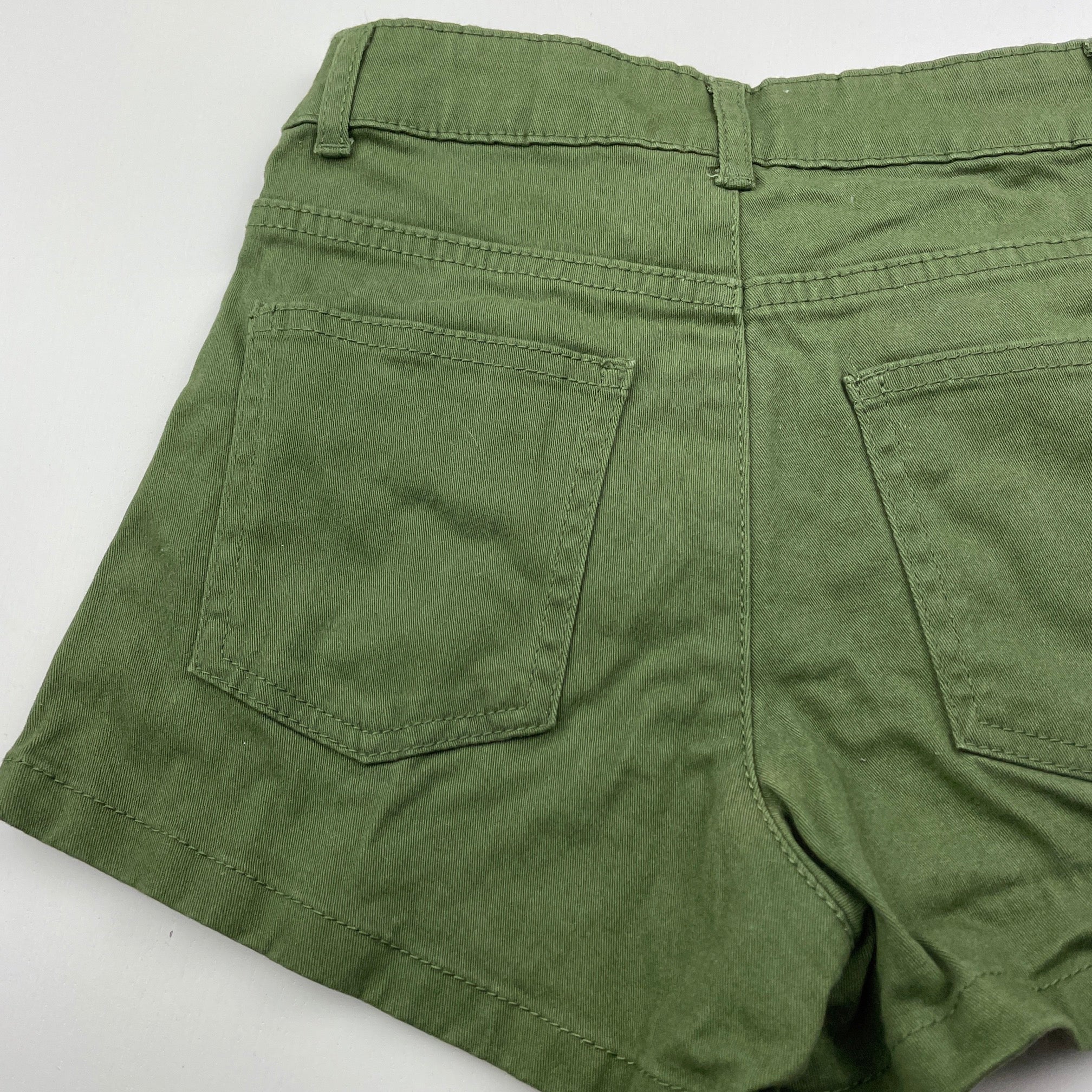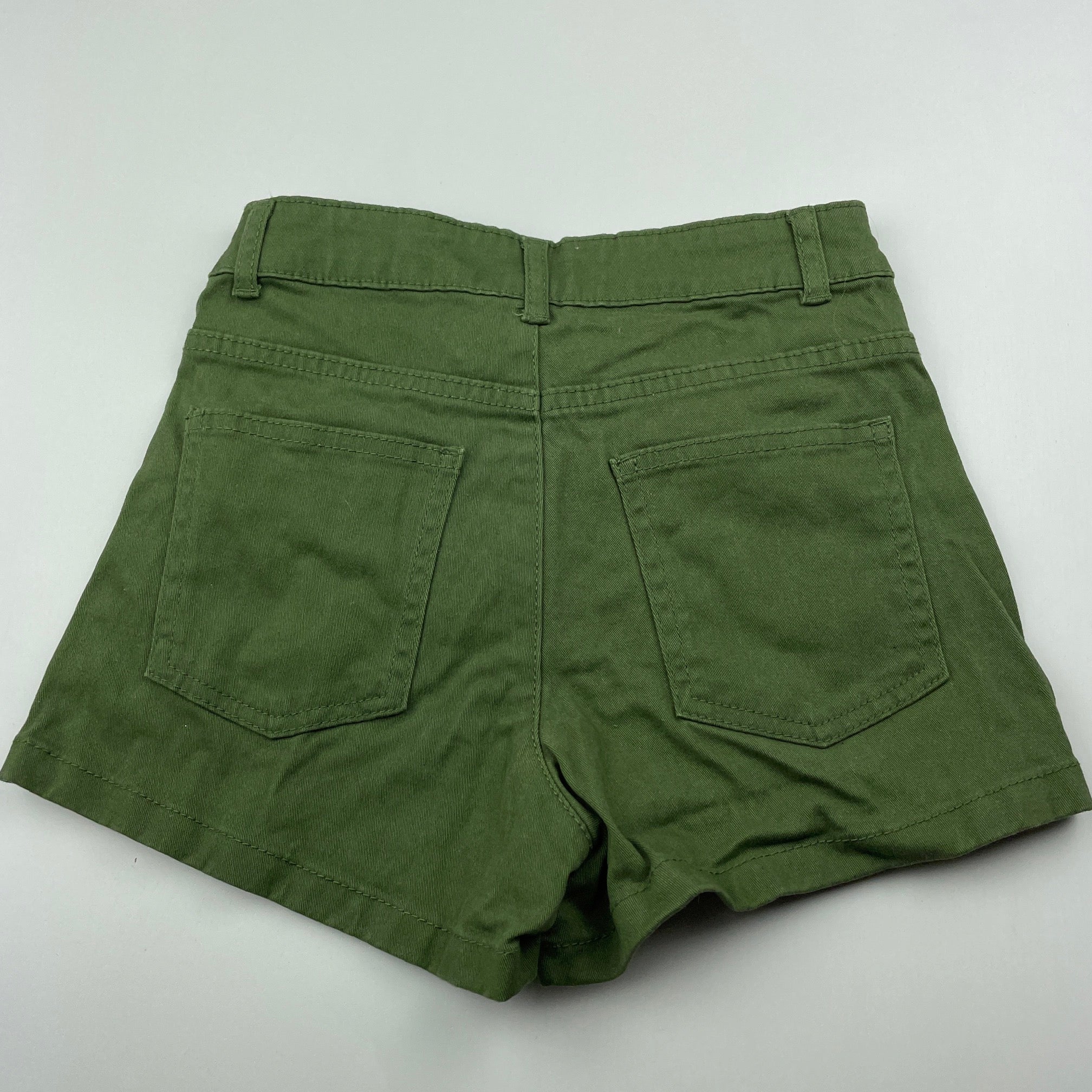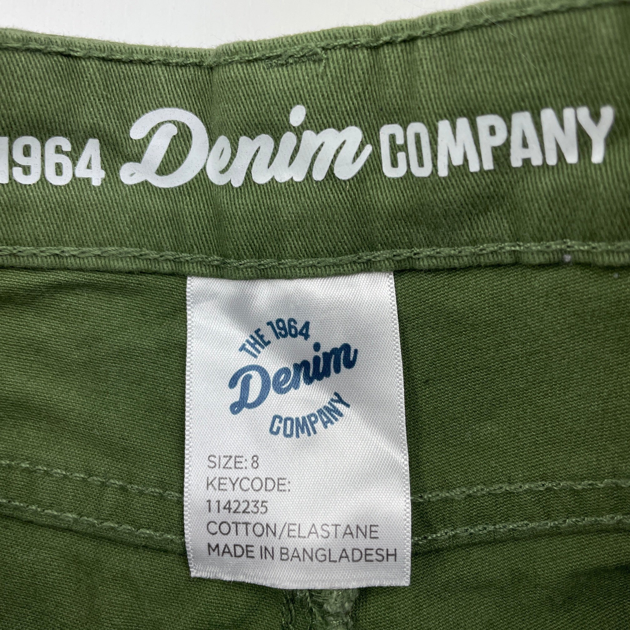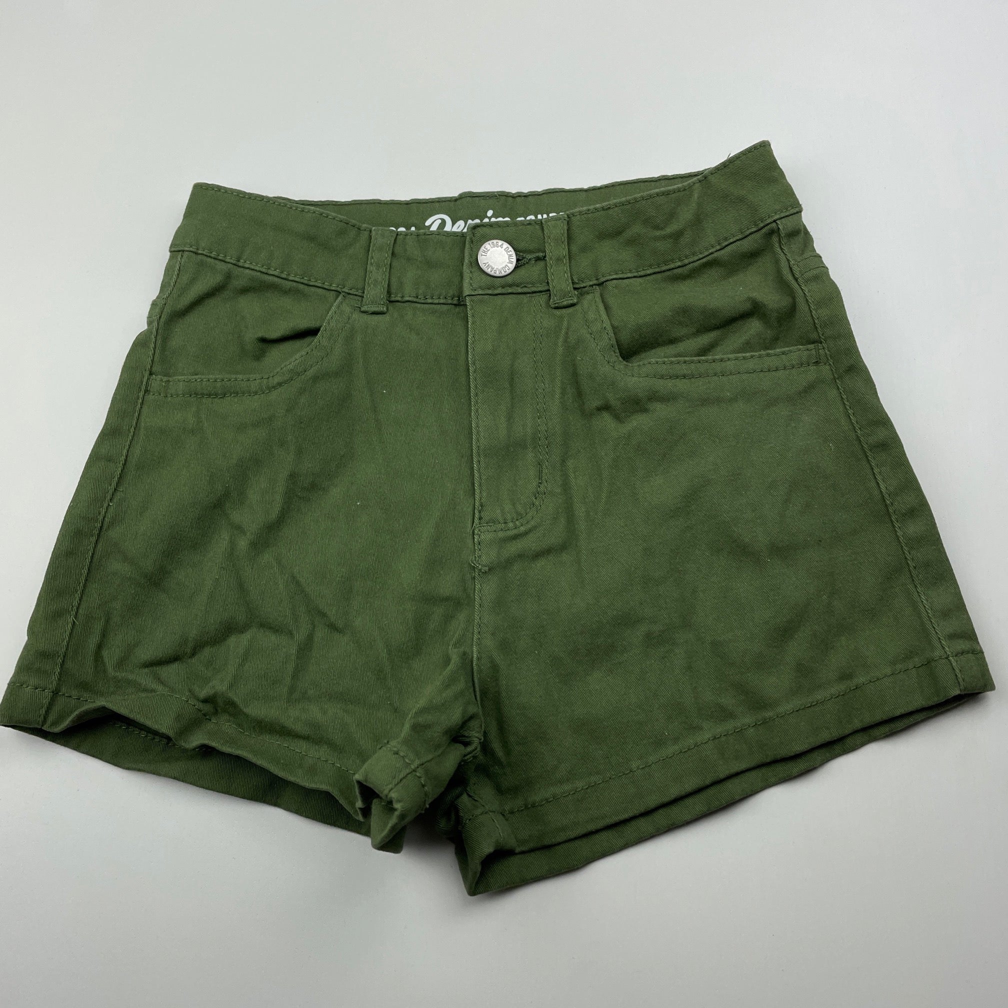 1964 Denim Co, khaki stretch cotton shorts, W: 27cm across, EUC, size 8,