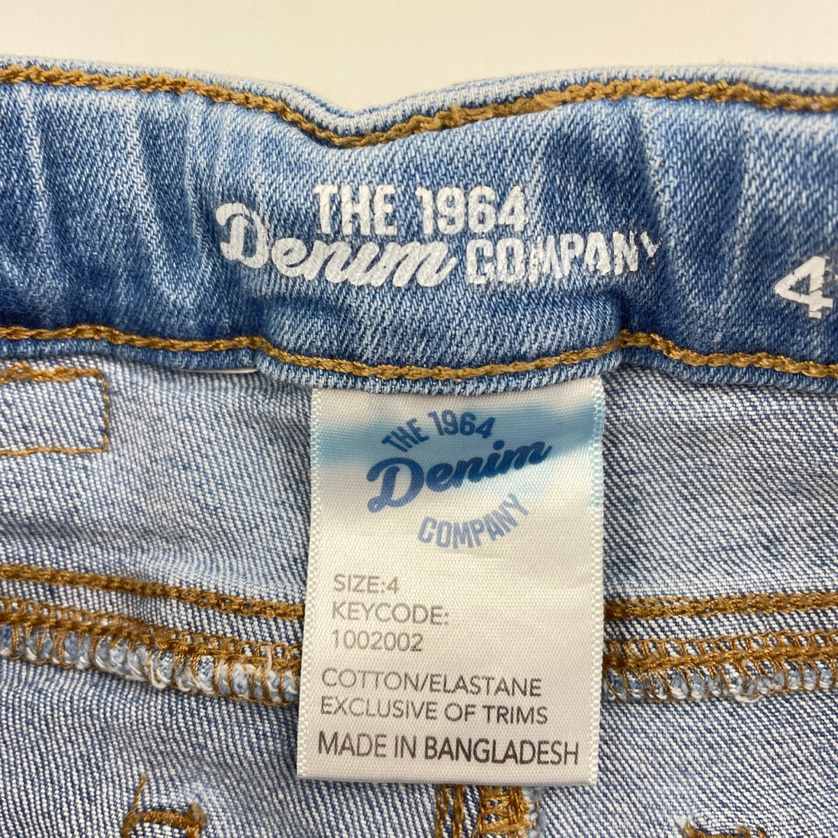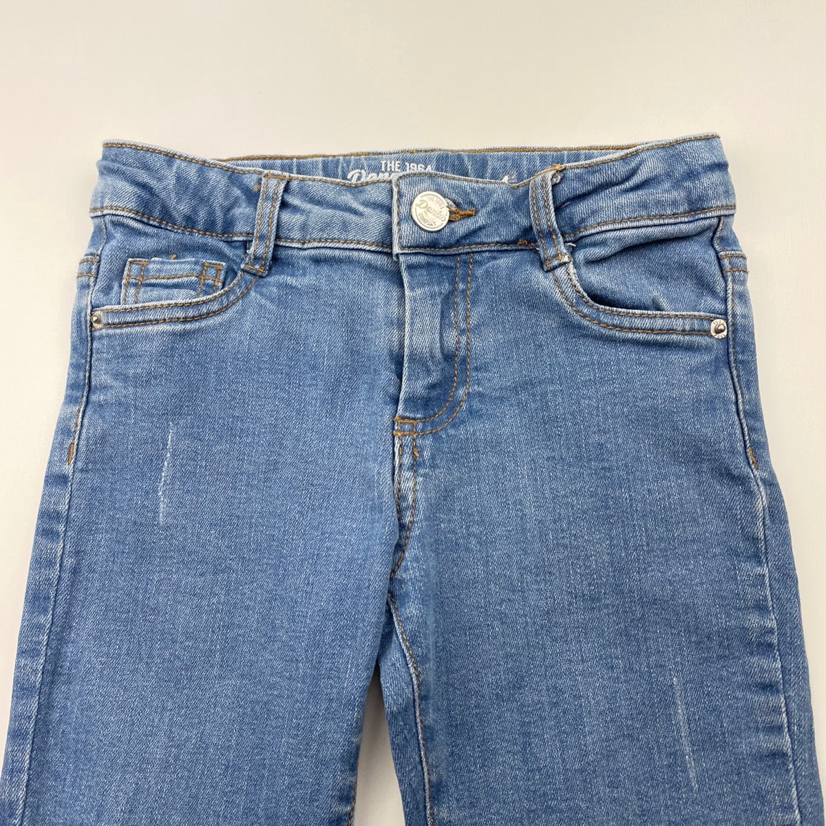1964 Denim Co, distressed stretch denim jeans, adjustable, Inside leg: 45.5cm, FUC, size 4,