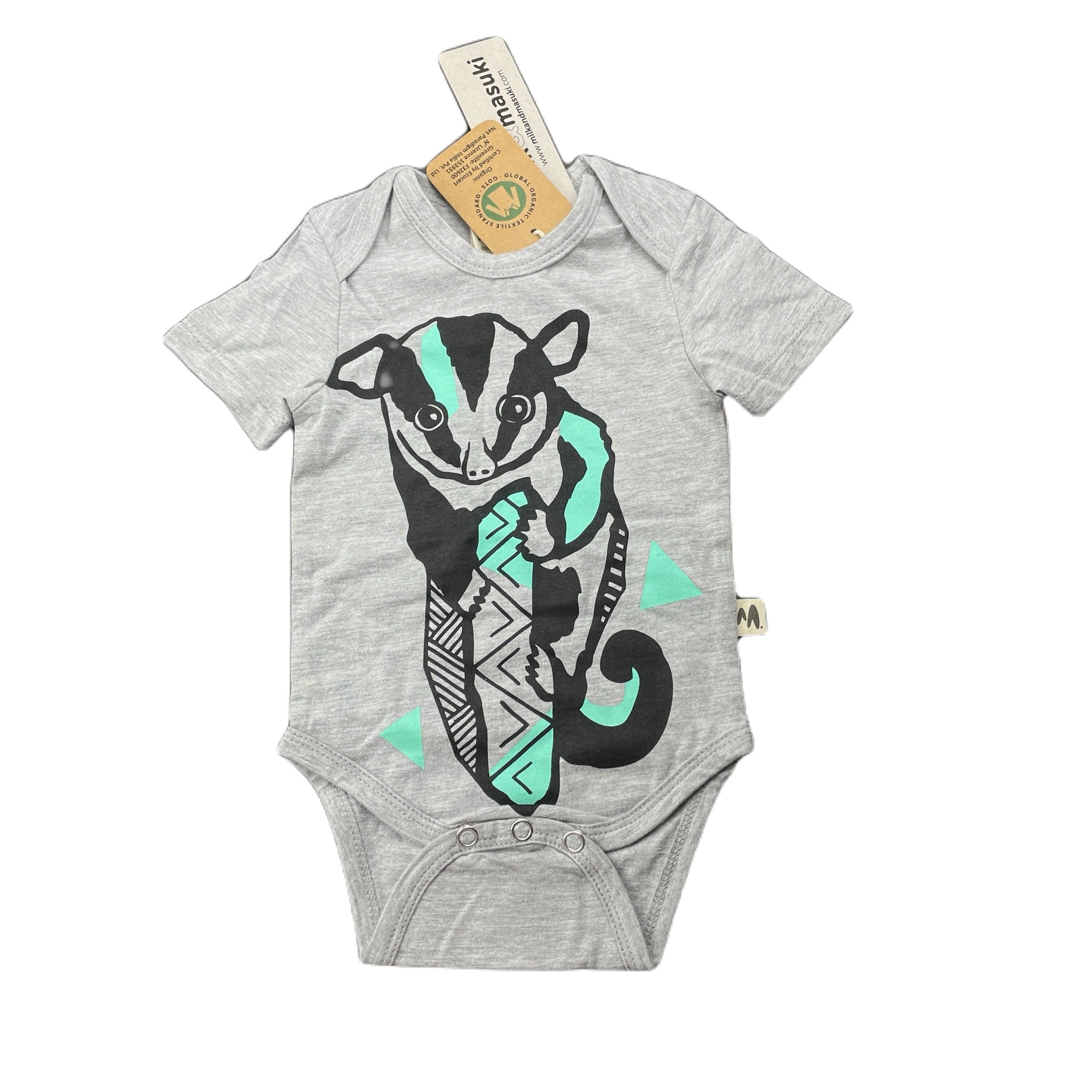 Milk & Masuki, organic cotton bodysuit/romper, possum, NEW, size 000,