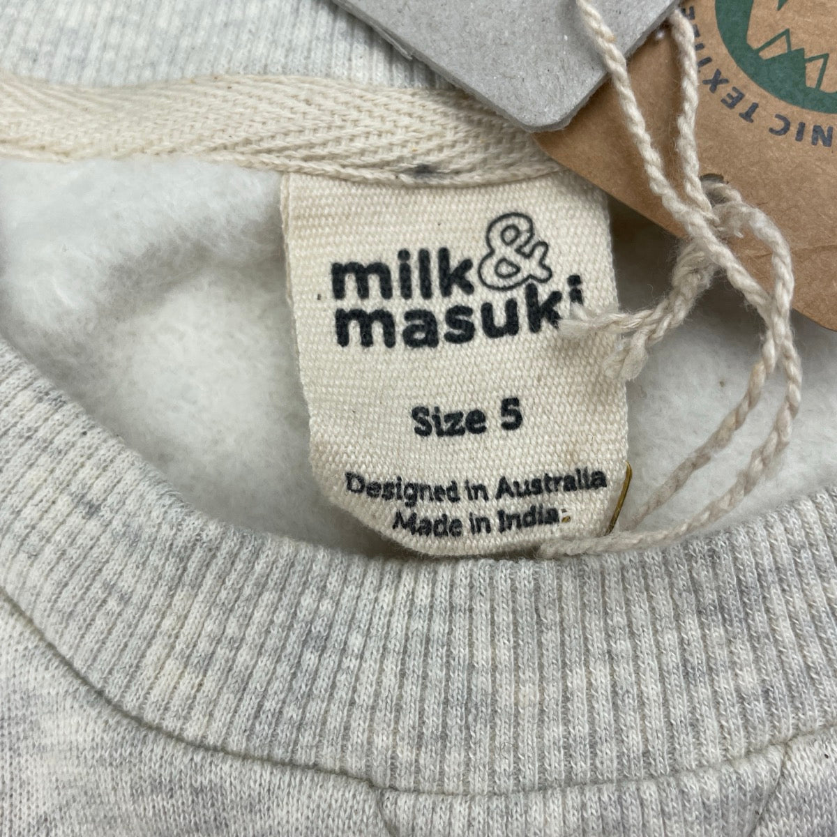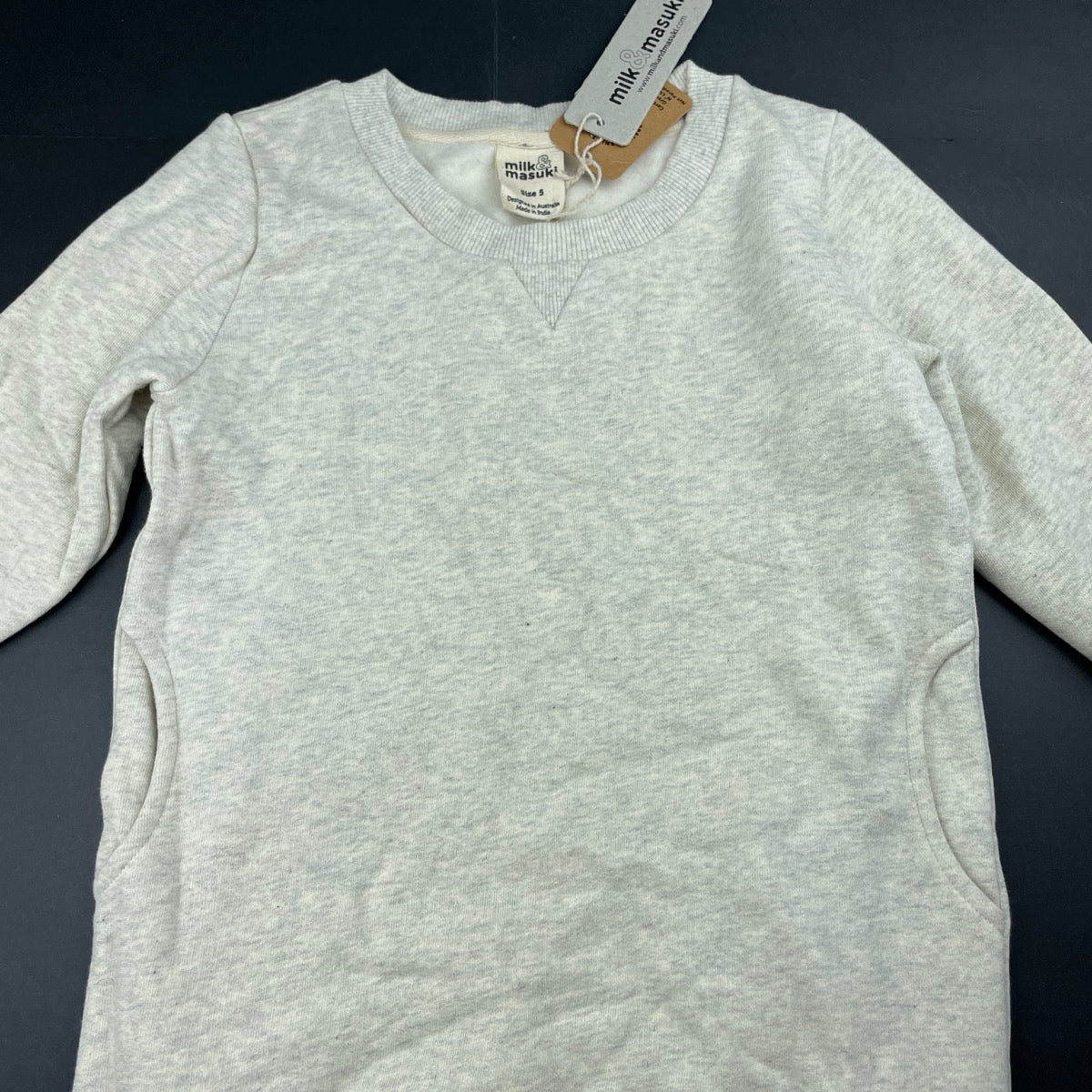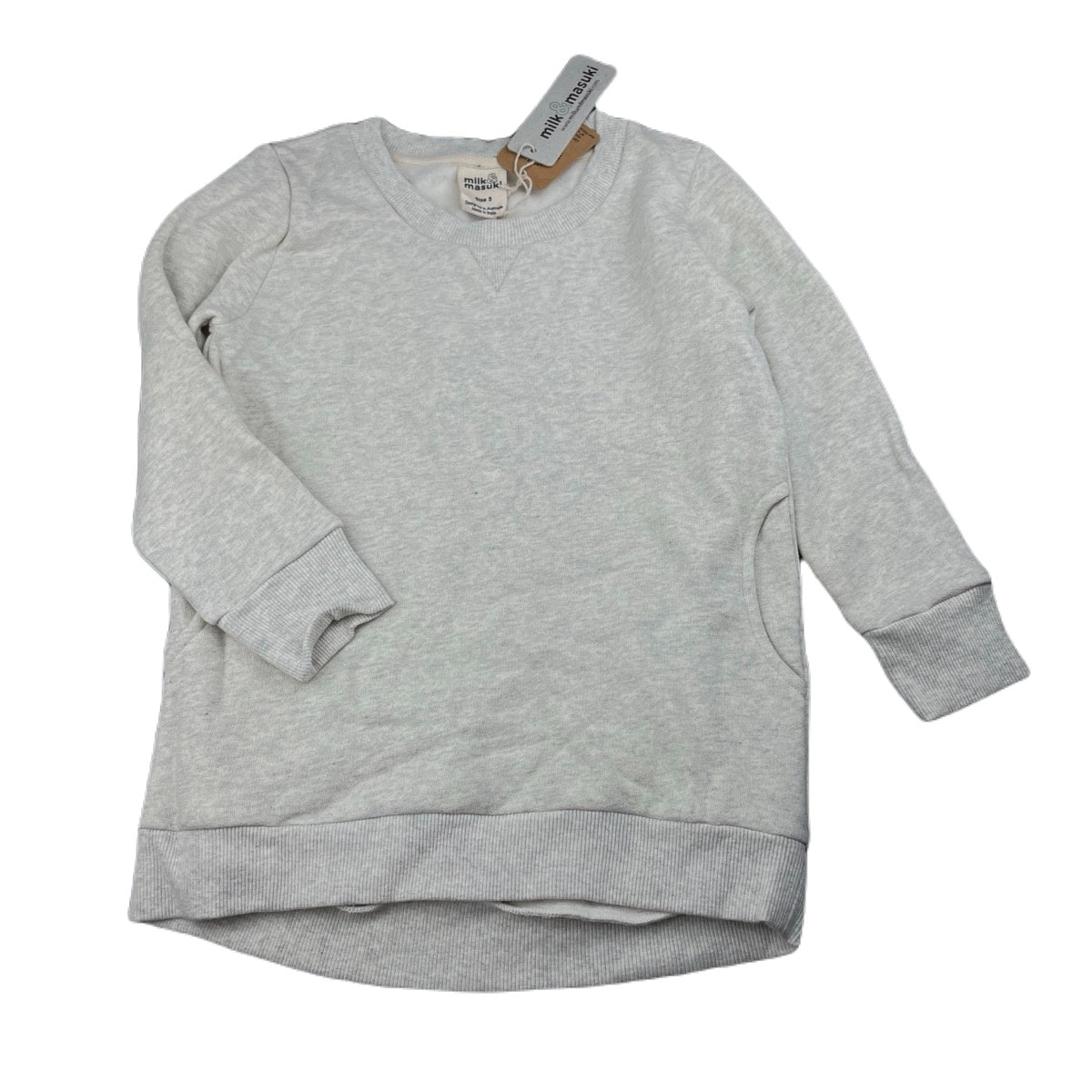 Milk & Masuki, fleece lined organic cotton tunic sweater, NEW, size 5, L: 51cm at front