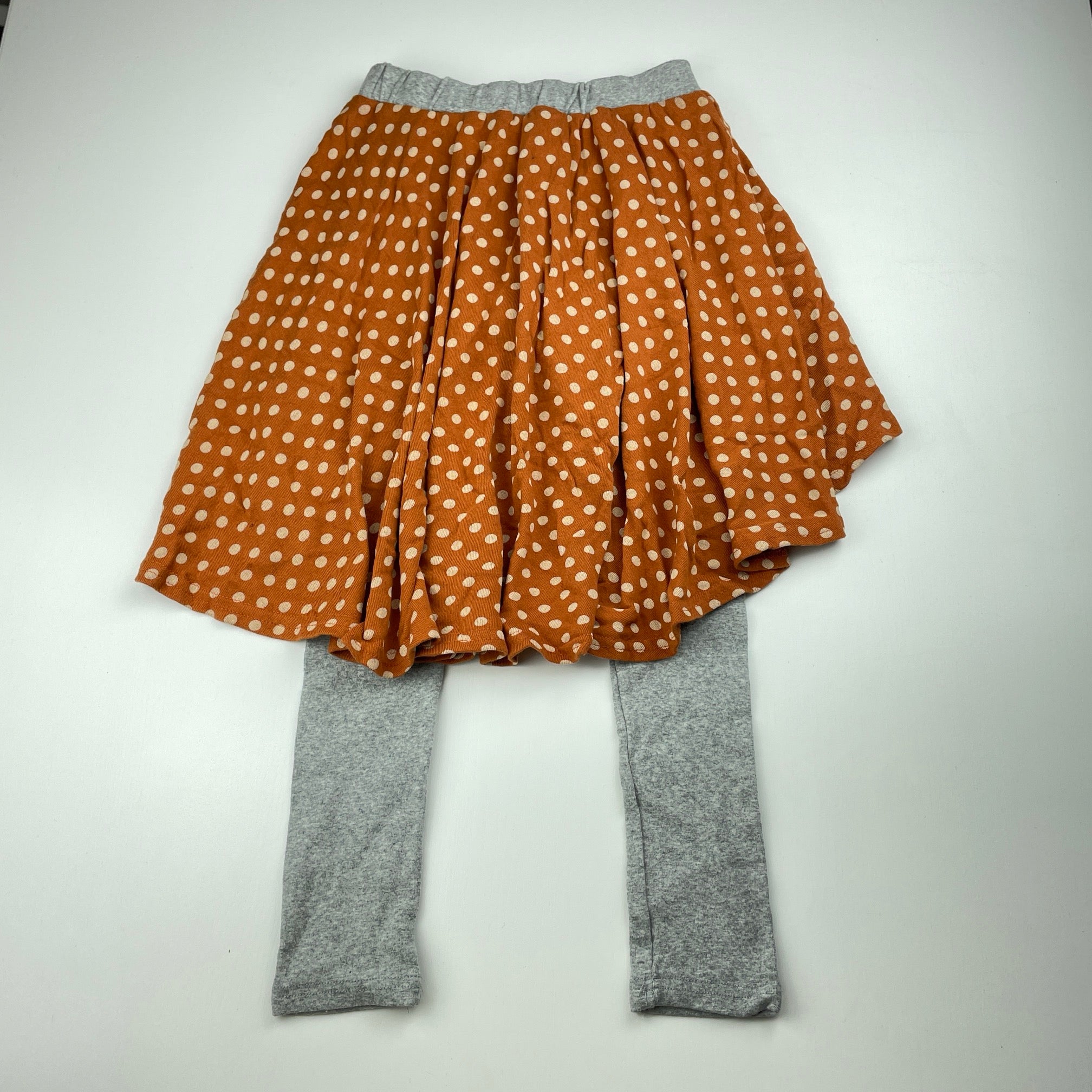 Red Choco, all-in-one skirt/leggings, elasticated, Inside leg: 44cm, GUC, size 7-8,