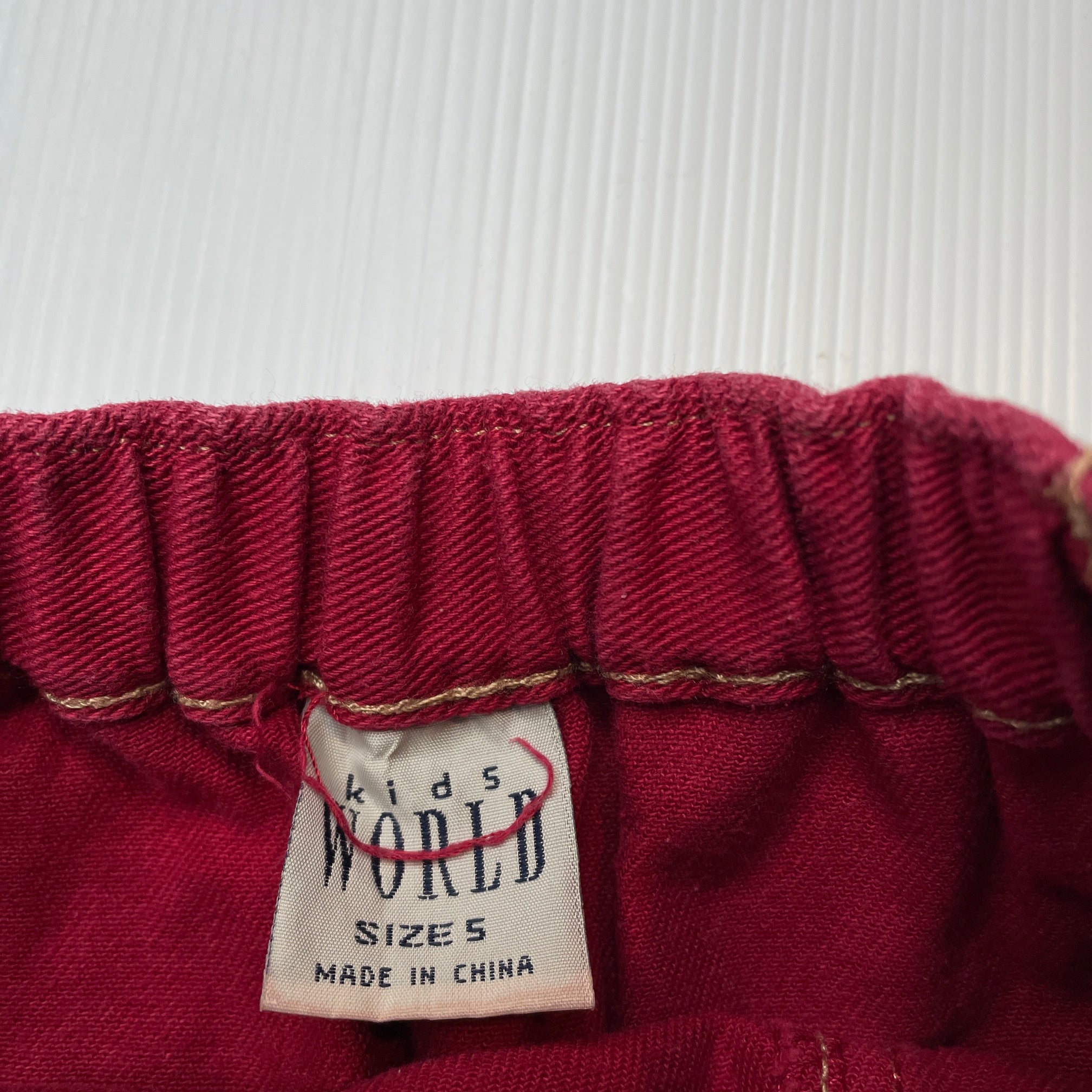 Kids World, vintage red denim skirt, elasticated, L: 34.5cm, GUC, size 5,