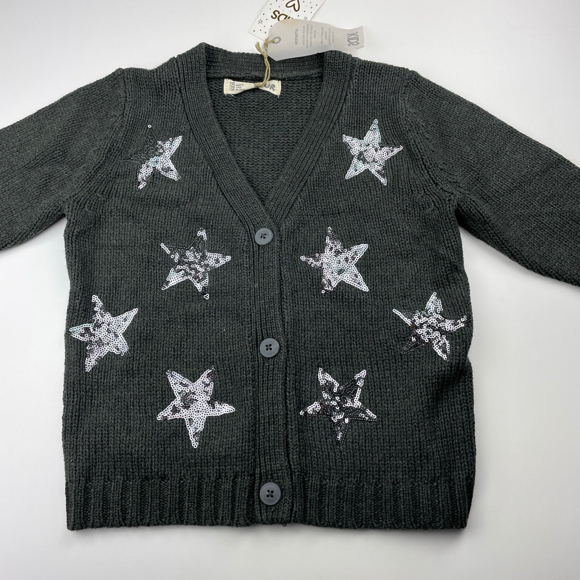 Cotton On, chunky knit cardigan, sequin stars, NEW, size 4,