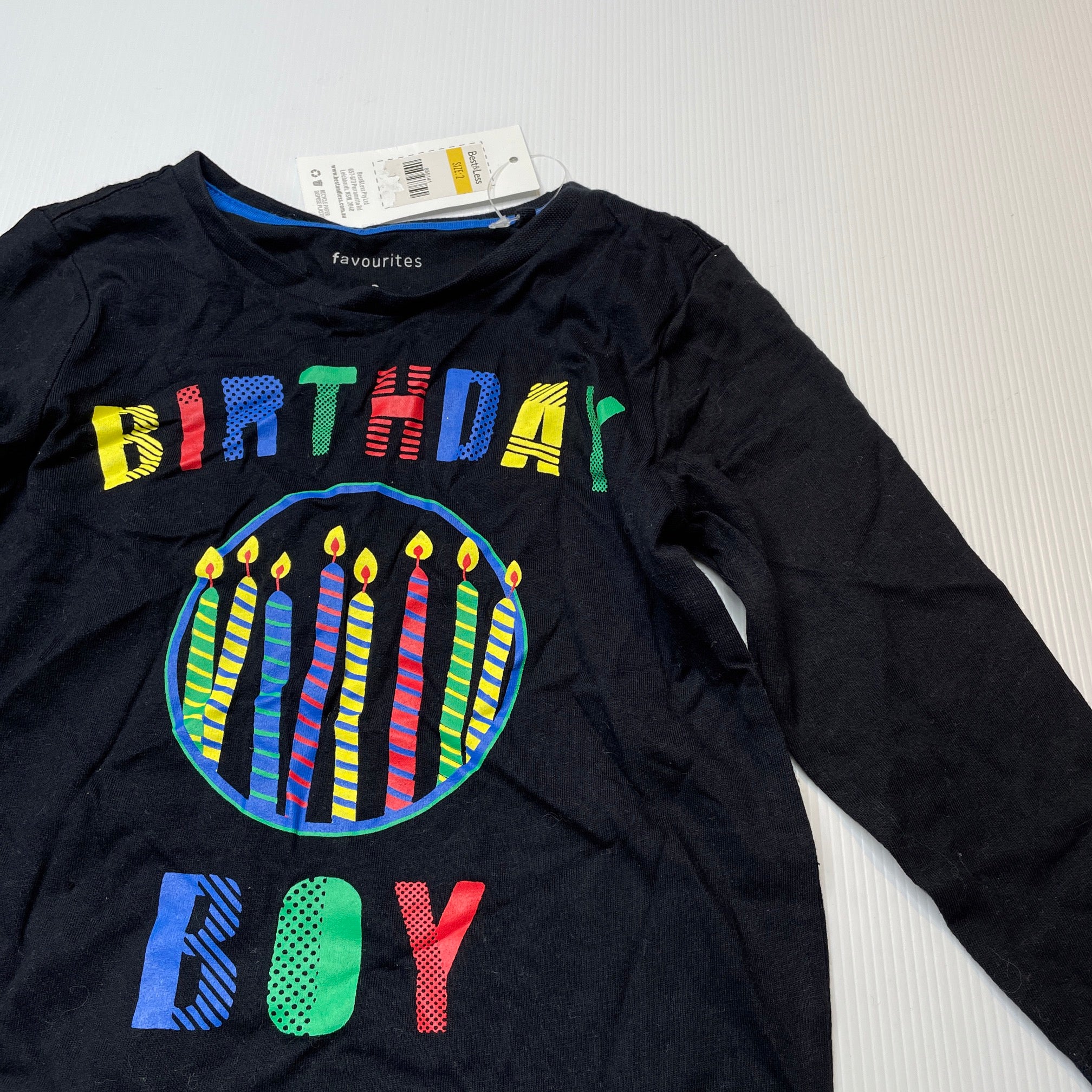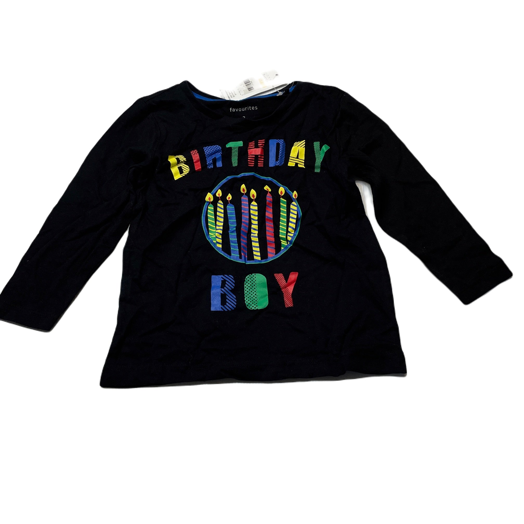 Favourites, cotton long sleeve top, birthday boy, NEW, size 2,
