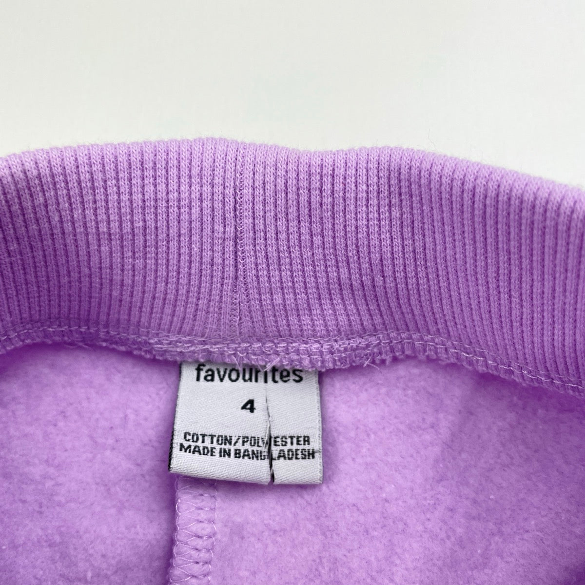 Favourites, purple fleece lined track pants, Inside leg: 42.5cm, EUC, size 4,