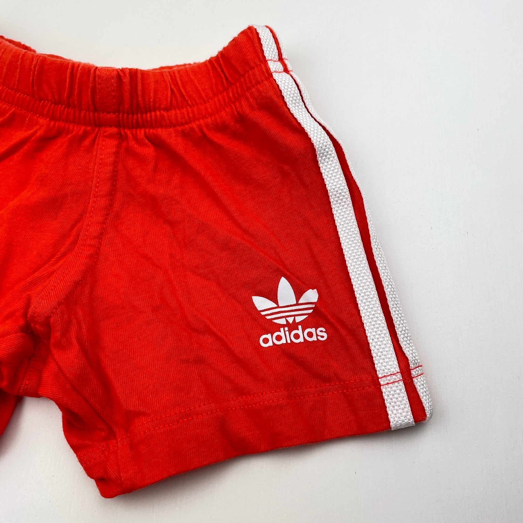 Adidas orange cotton shorts, elasticated, size 000, Pre-loved