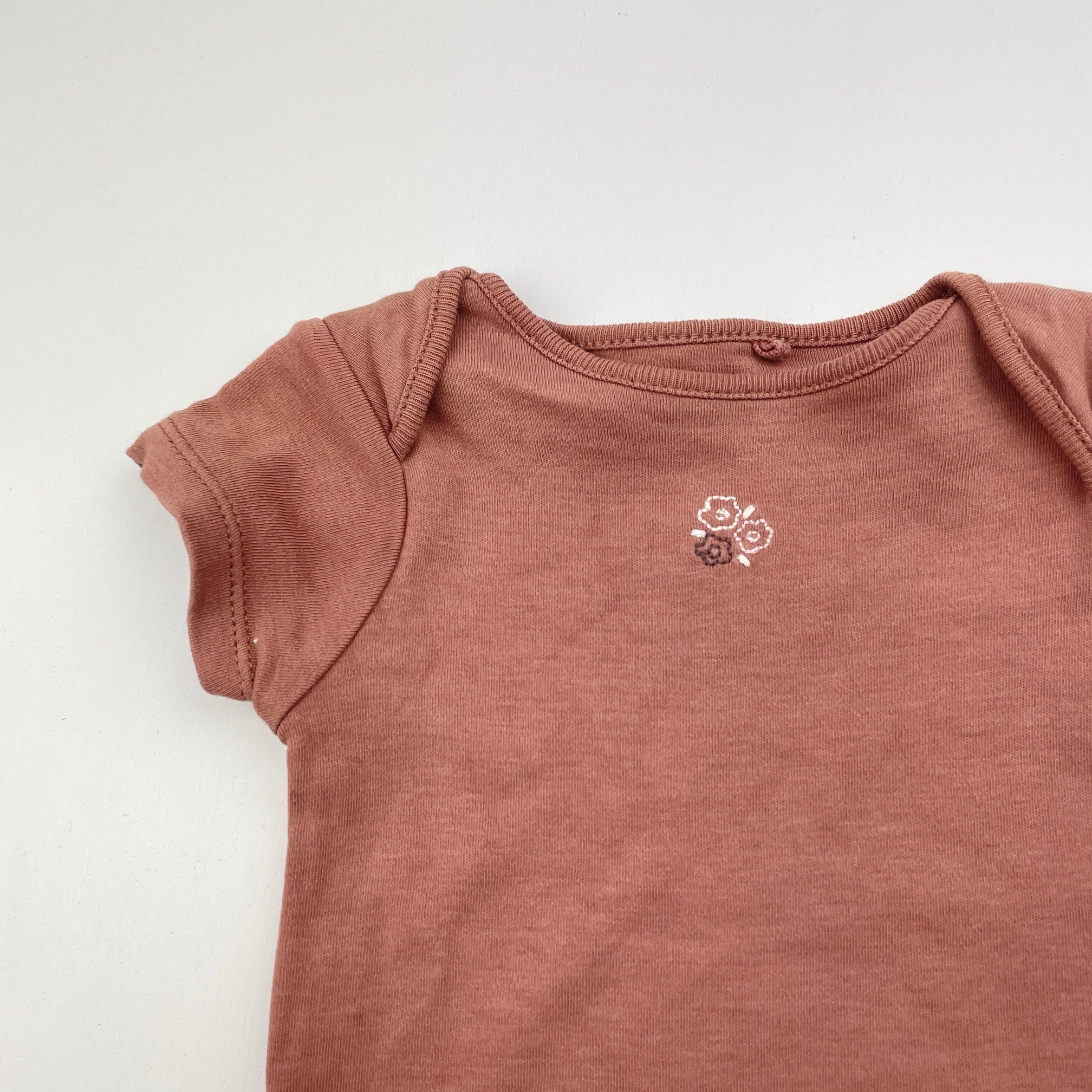 Next, embroidered cotton bodysuit / romper, EUC, size 000,