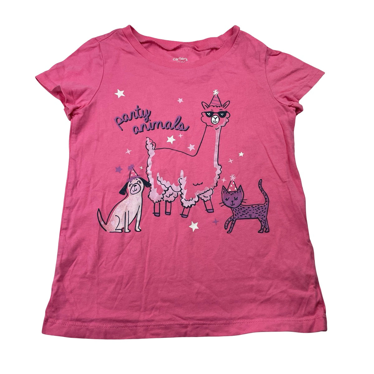 Carter's, pink cotton te / top, cat & dog, GUC, size 6,