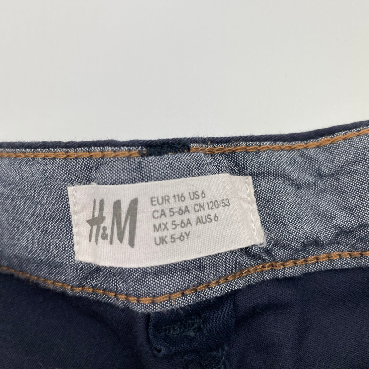 H&M, navy lightweight cotton chino shorts, adjustable, EUC, size 6,