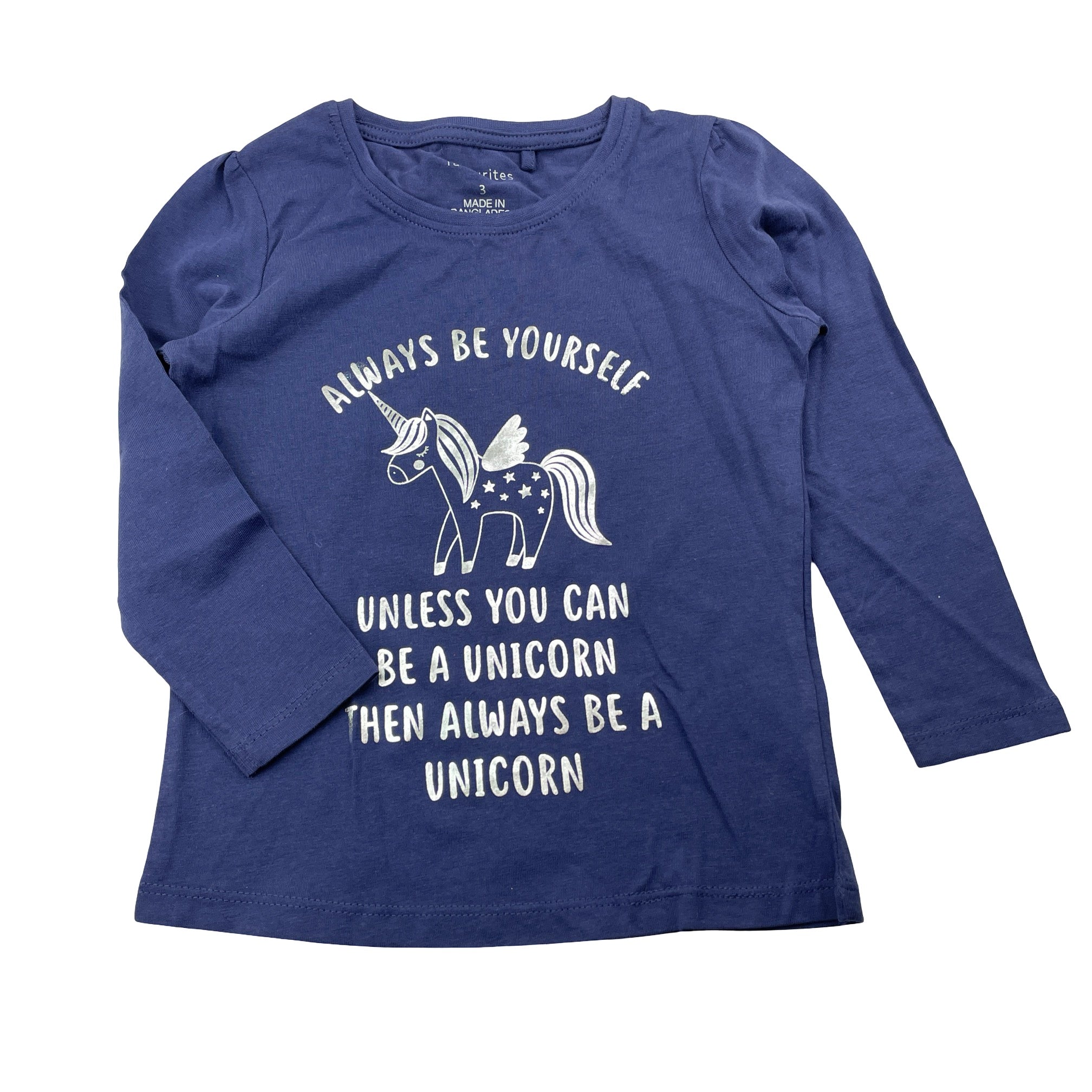 Favourites, cotton long sleeve tee / top, unicorn, EUC, size 3,