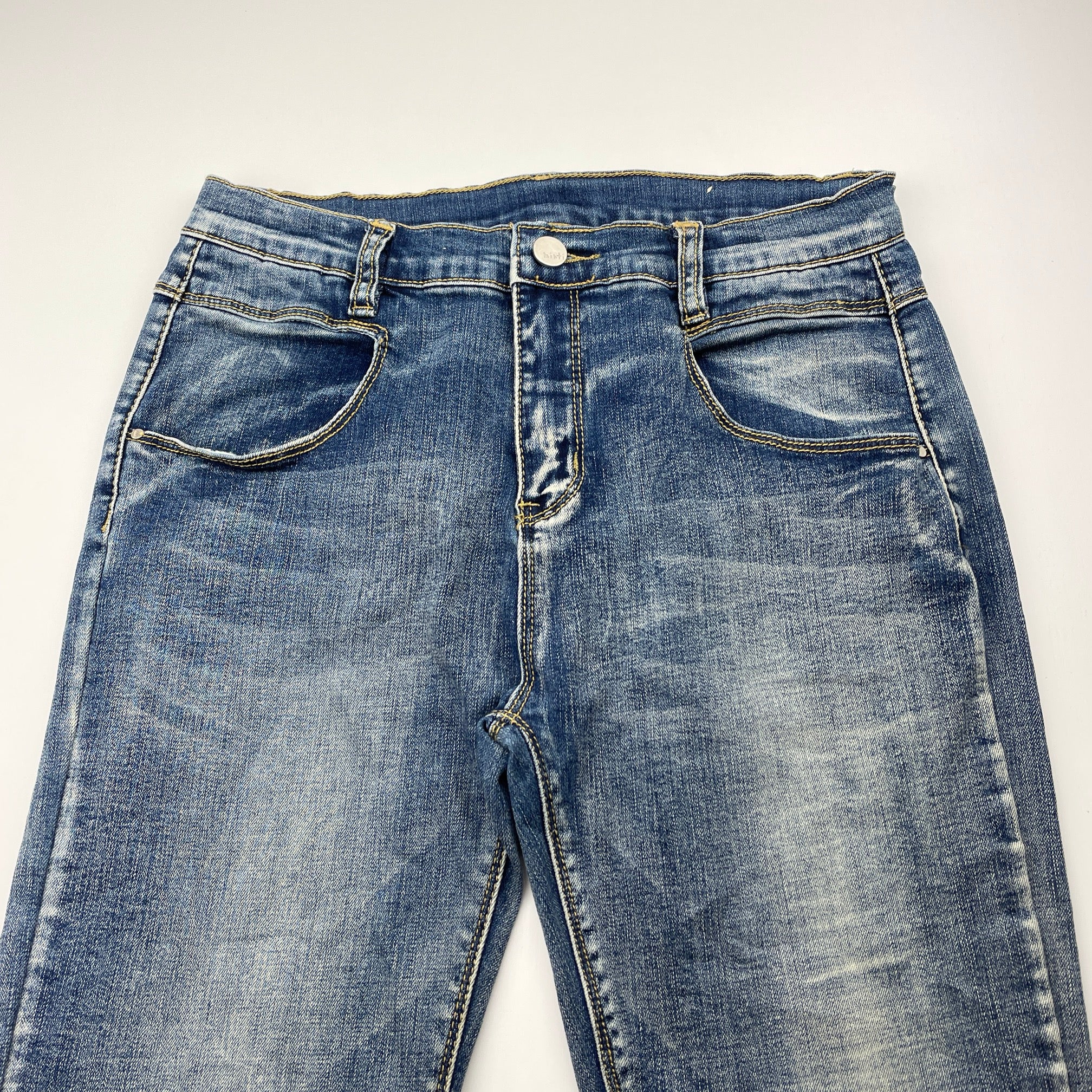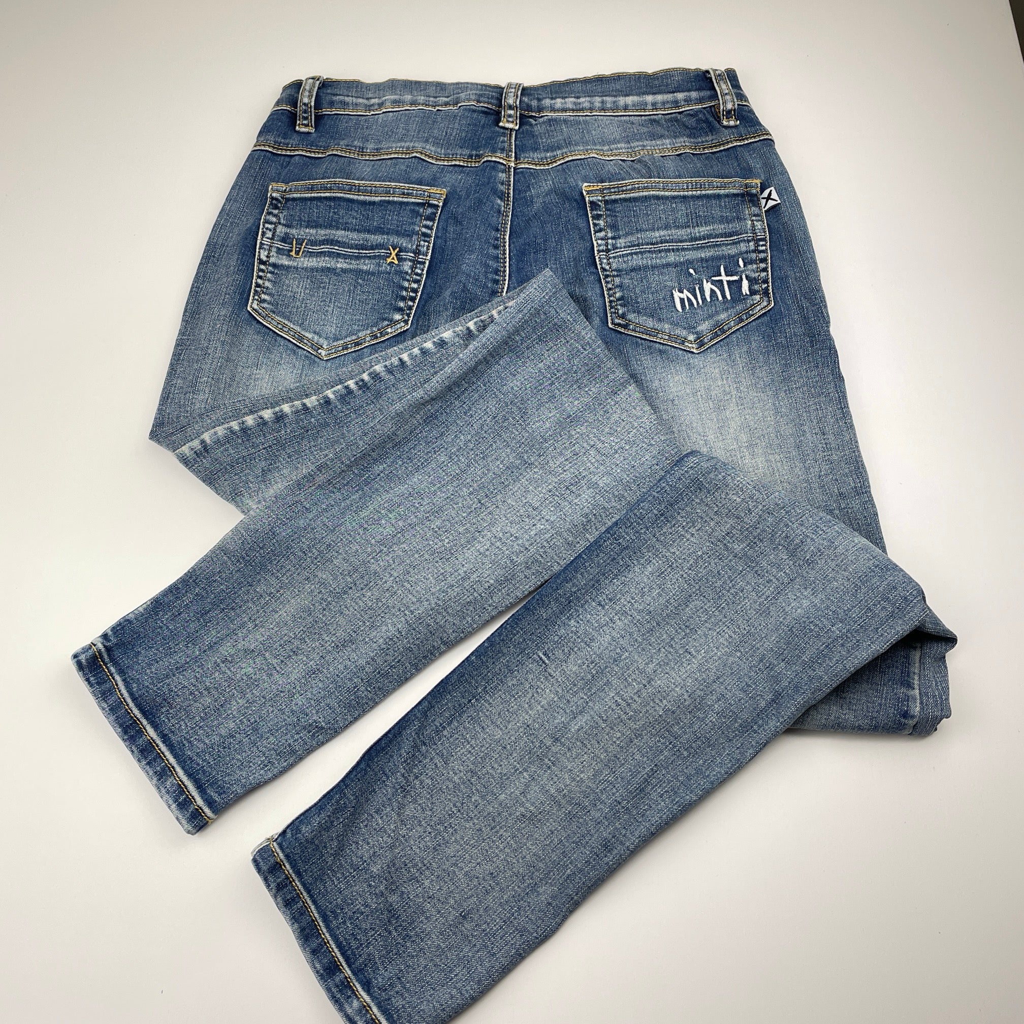 Minti, stretch denim jeans, adjustable, Inside leg: 72cm, GUC, size 14,