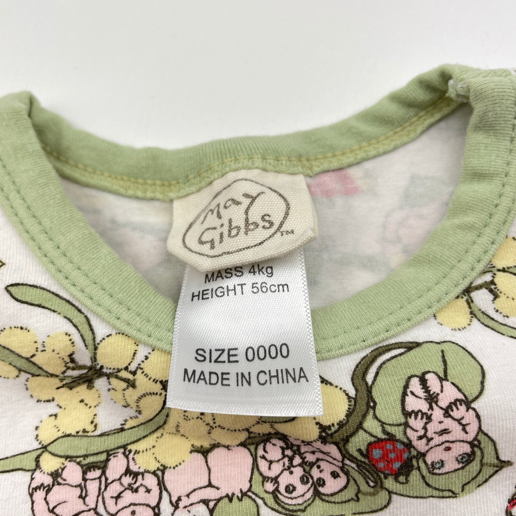 May Gibbs, Gumnut Babies bodysuit / romper, GUC, size 0000,